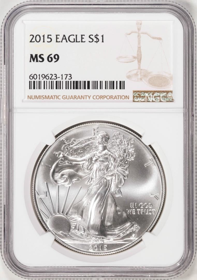 One 2015 $1 American Silver Eagle NGC MS69. NGC Certified.