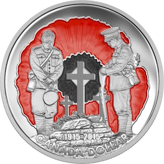 2015 $1 In Flanders Fields, 100th Anniversary - Limited Edition Proof Pure Silver Dollar. Tax Exempt.