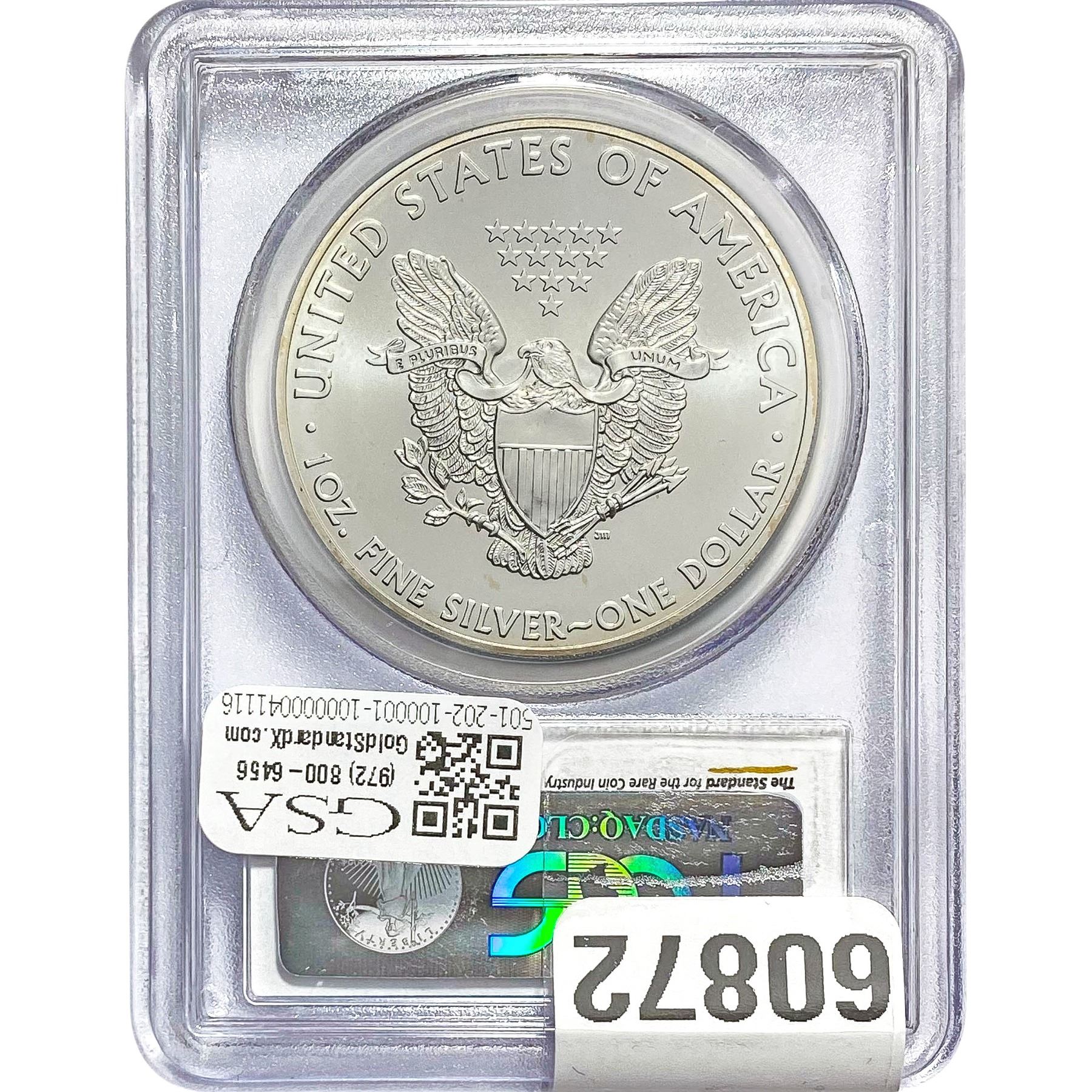e. Coins sold referencing a third-party grading service are sold “AS IS” without any express or implied warranty, except for a guarantee by GSA that they are genuine. Removal or alteration of the holder, voids all of Bidder’s claims concerning that Product. Certain warranties may be available from the grading services and Bidders are referred to them for further details: Numismatic Guaranty Corporation (NGC), PO Box 4776, Sarasota, FL 34230, www.ngccoin.com/services/writtenguarantee.asp; Professional Coin Grading Services (PCGS), PO Box 9458, Newport Beach, CA 92658, www.pcgs.com/guarantee.html; ANACS, 6555 S. Kenton St., Ste. 303, Englewood, CO 80111; and Independent Coin Grading Co. (ICG), 7901 East Bellview, Ave., Suite 50, Englewood, CO 80111.