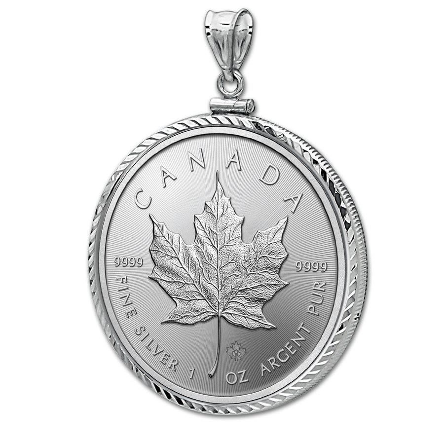 2015 1 oz Silver Maple Leaf Pendant (Diamond-ScrewTop Bezel)
