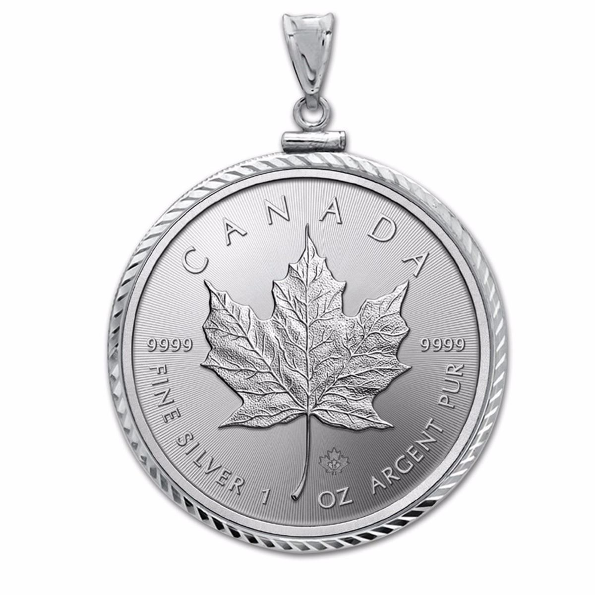 2015 1 oz Silver Maple Leaf Pendant (Diamond-ScrewTop Bezel)