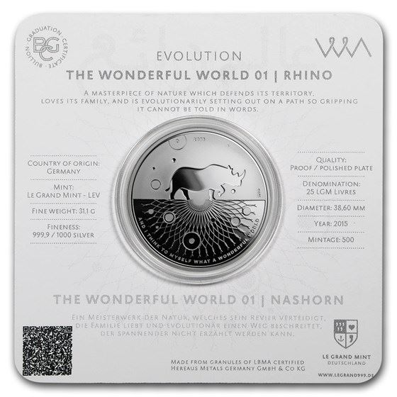 One piece 2015 1 oz Silver Proof Evolution I Wonderful World (Rhino)
