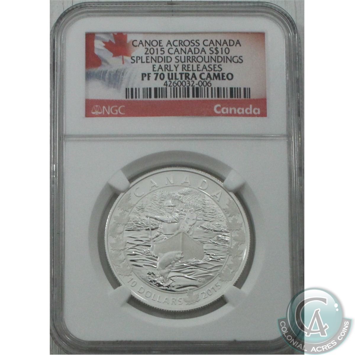 2015 $10 Canoe Across Canada Series - Splendid surroundings Fine Silver NGC Certified PF70; Ultra Cameo (Tax Exempt)