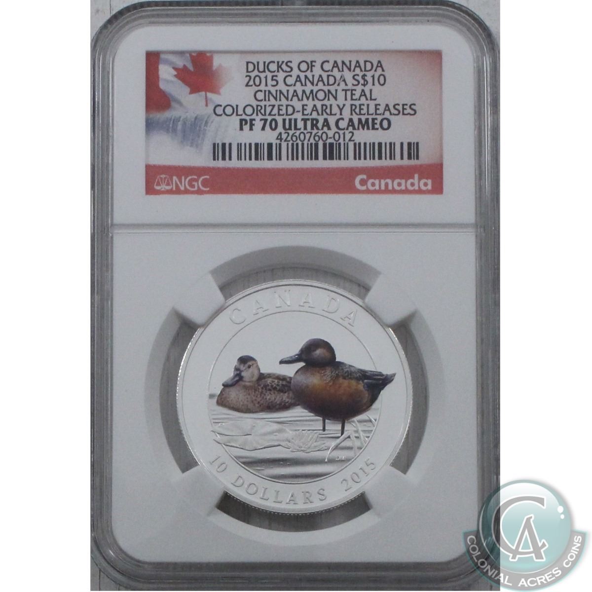 2015 $10 Ducks of Canada Series; Cinnamon Teal Colourized Fine Silver NGC Cert. PF70 Ultra Cameo - Early Releases (Tax Exempt)