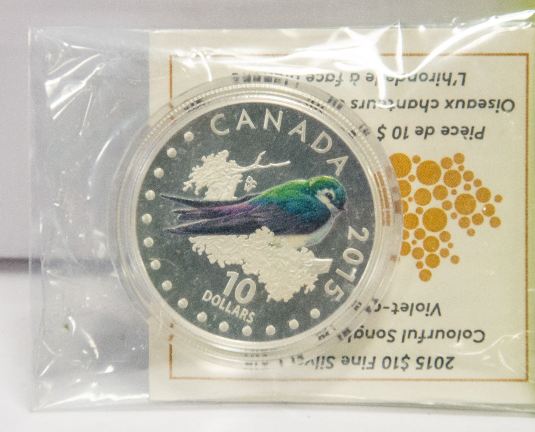 2015 $10 FINE SILVER COIN - VIOLET + GREEN SWALLOW