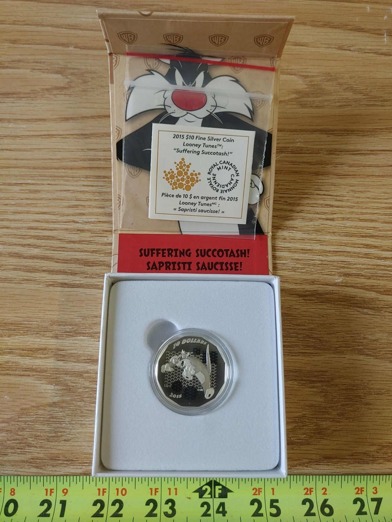 2015 $10 Fine Silver Coin Looney Tunes "Suffering Succotash"