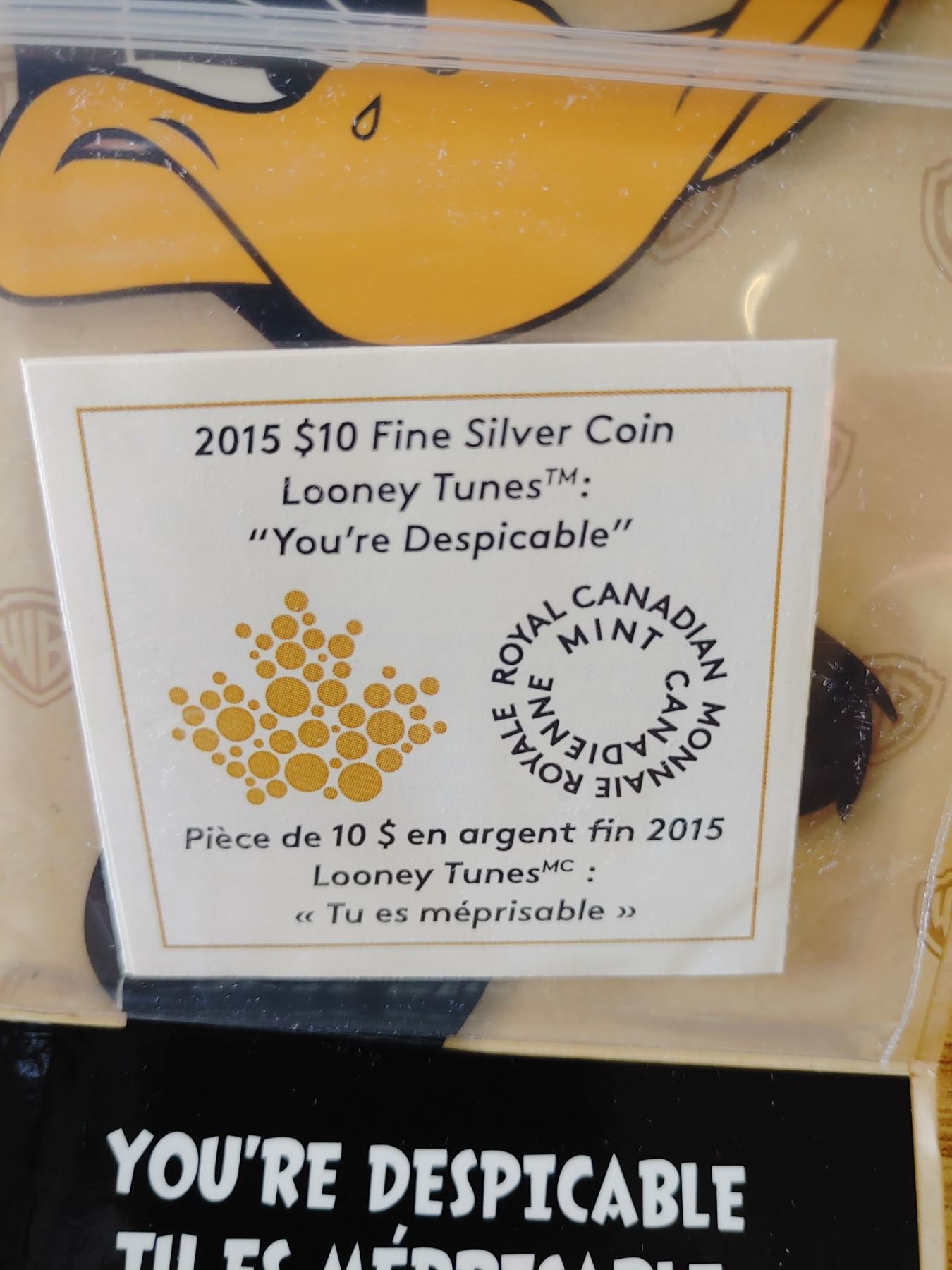 2015 $10 Fine Silver Coin Looney Tunes "Your Despicable"