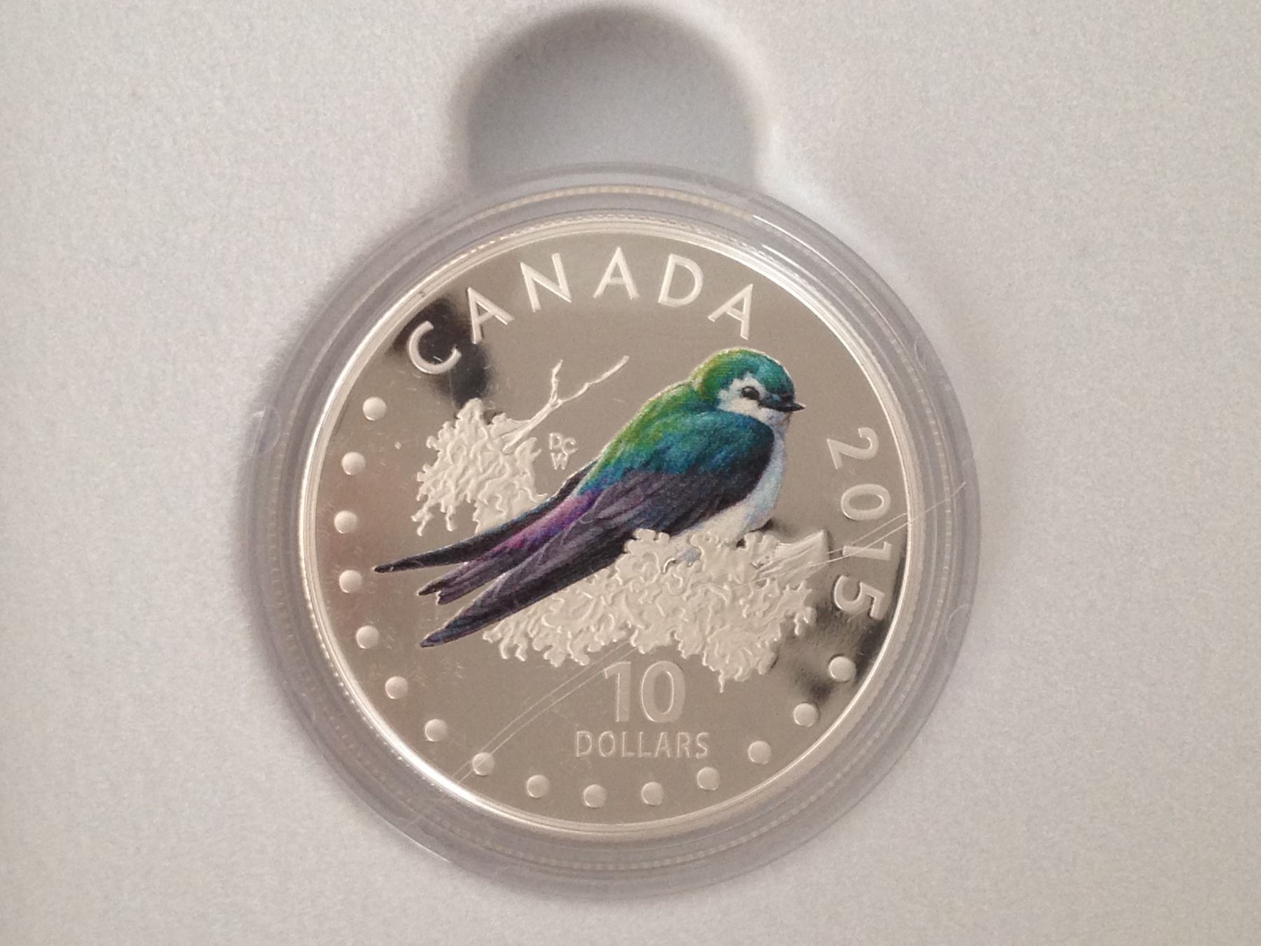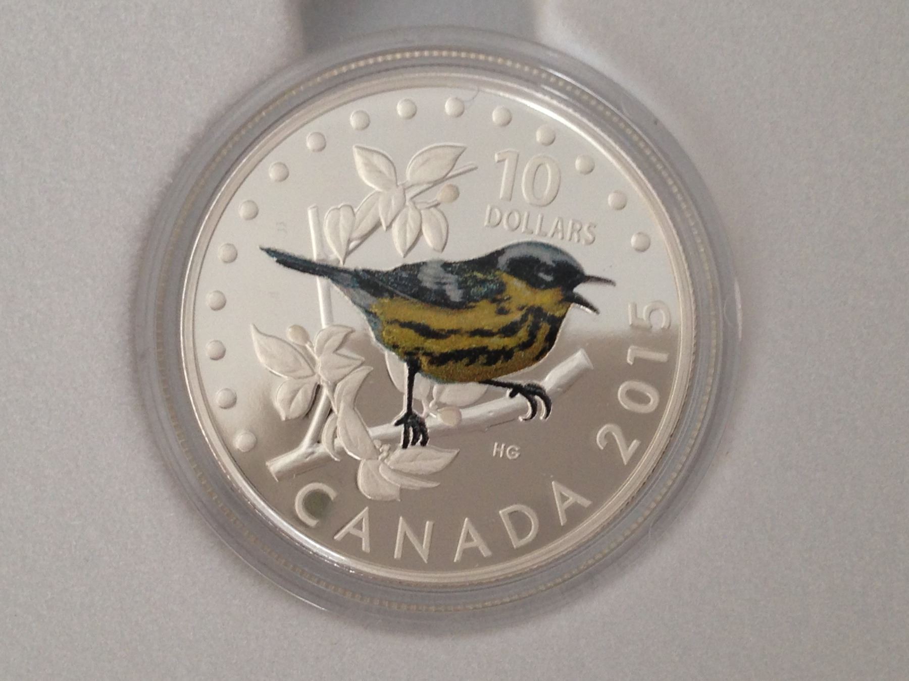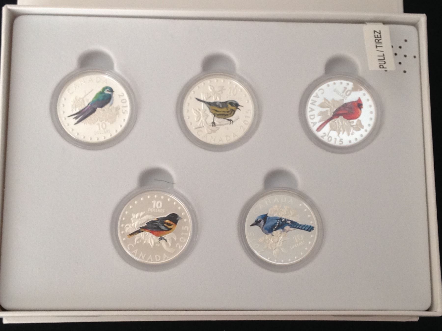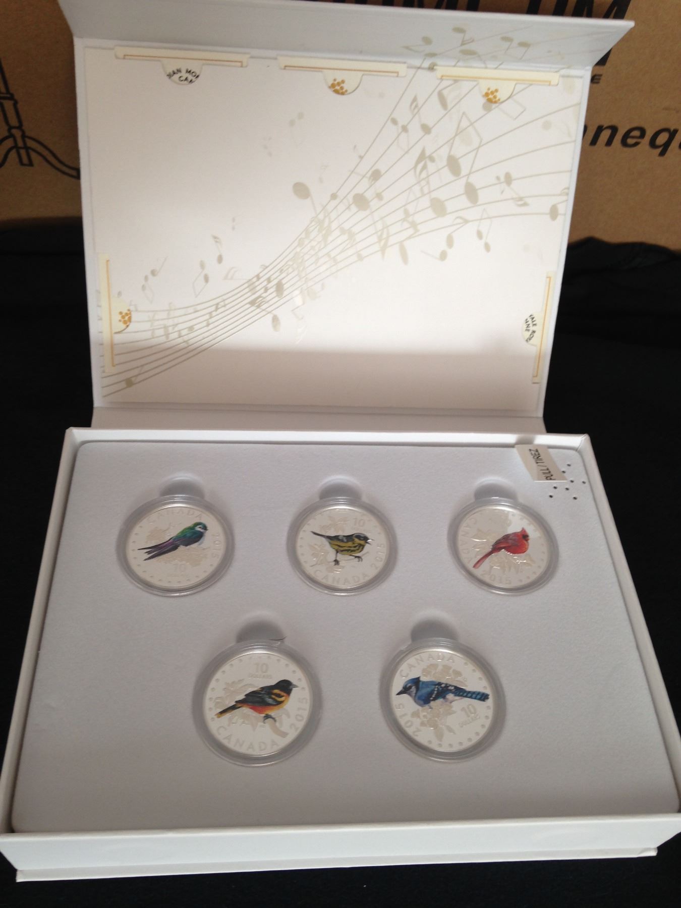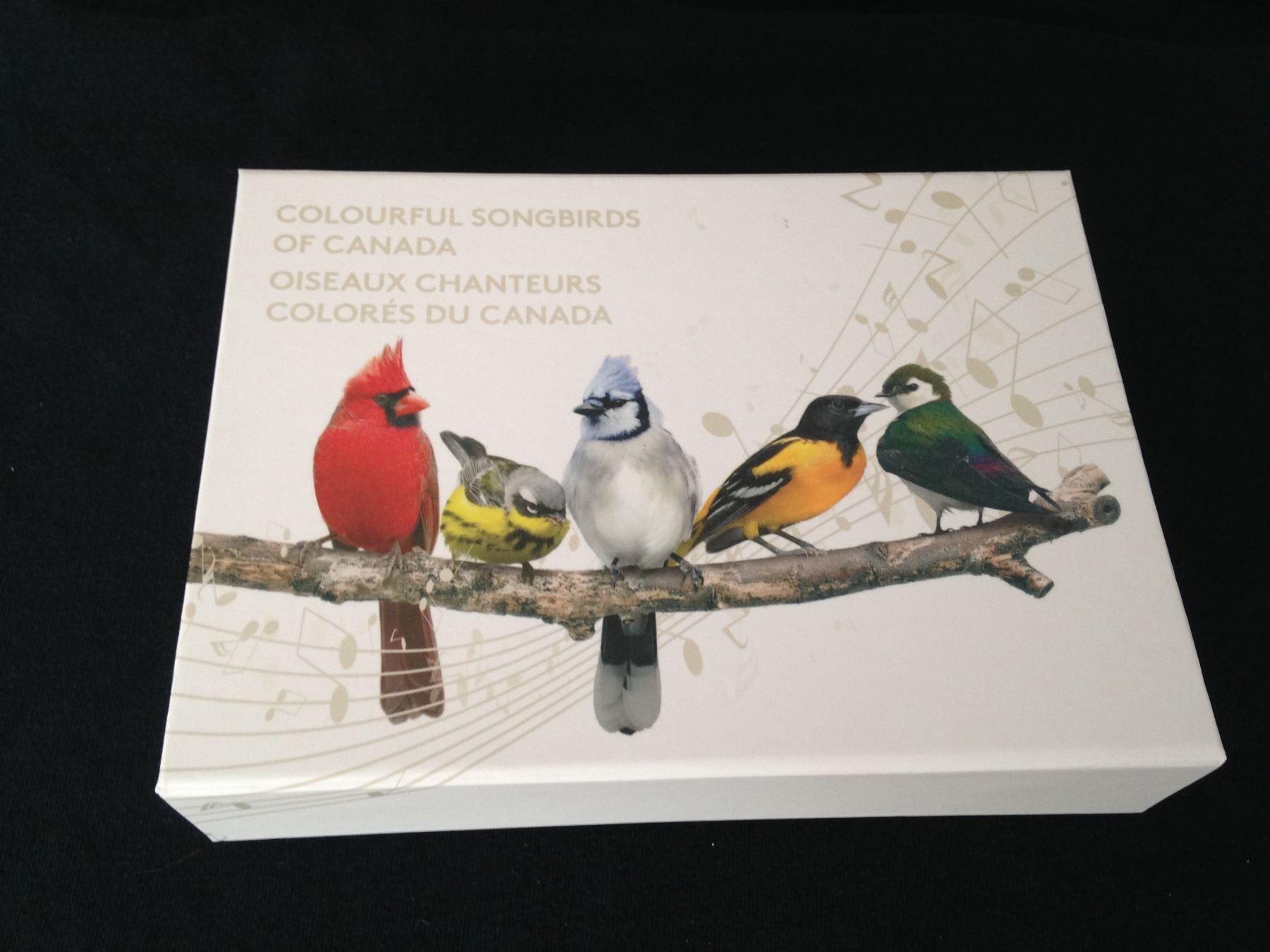 $10 Fine Silver Coins - Colourful Songbirds of Canada- Music Box Collector and Set (The Blue Jay, The Baltimore Oriole, Violet Green Swallow, The Magnolia Warbler, The Northern Cardinal)