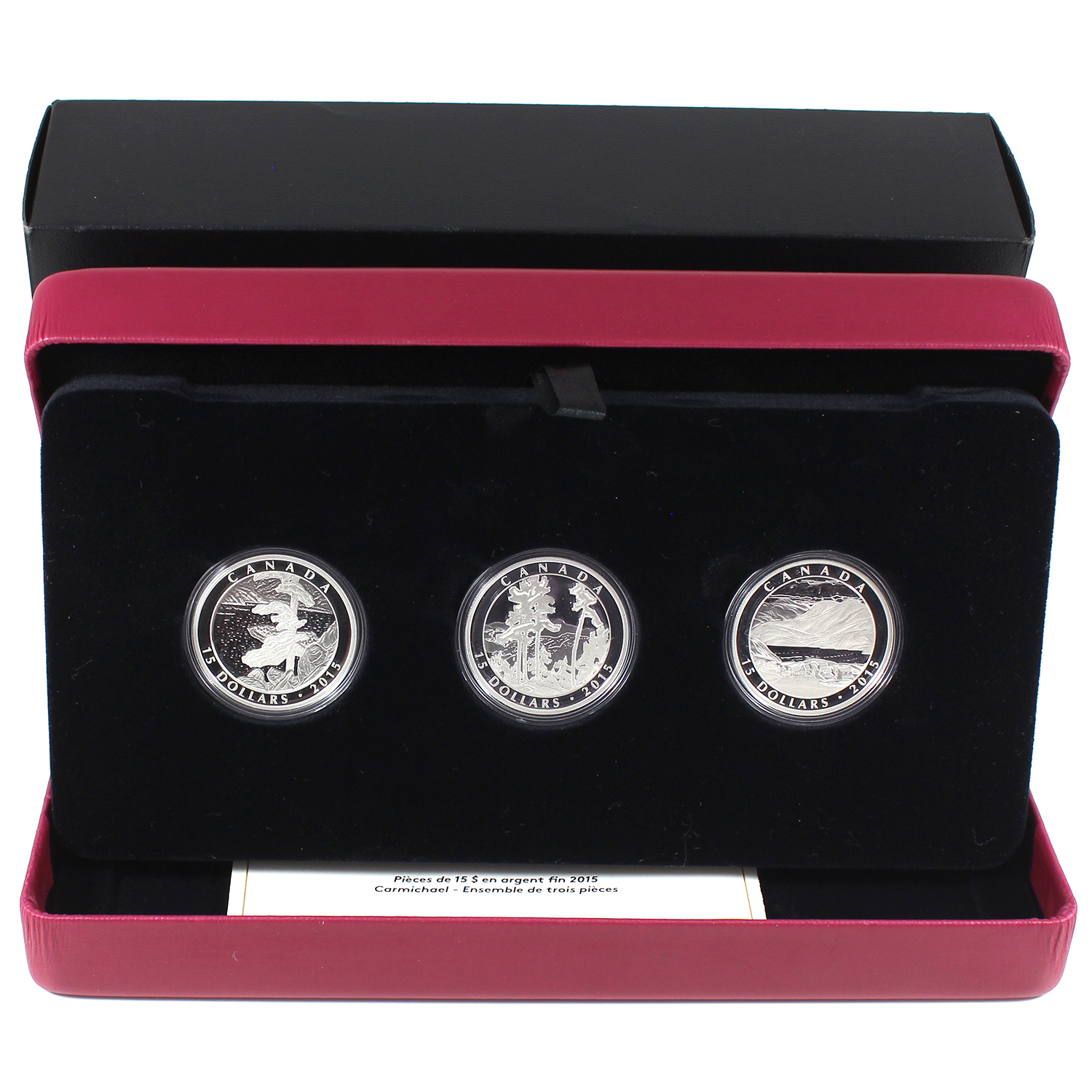 Each coin is 23.17g and .9999 fine, some natural toning. The images on the coin depict the paintings of famous Canadian artist Franklin Carmichael. (Tax Exempt)