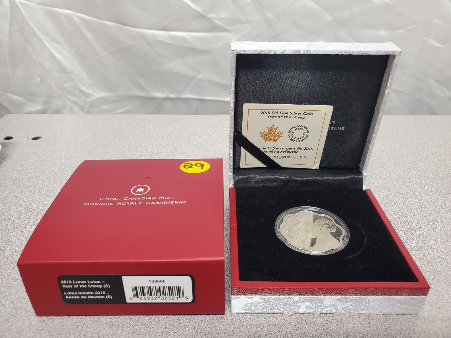 2015 $15 Fine Silver Coin - Lunar Lotus Year of the Sheep