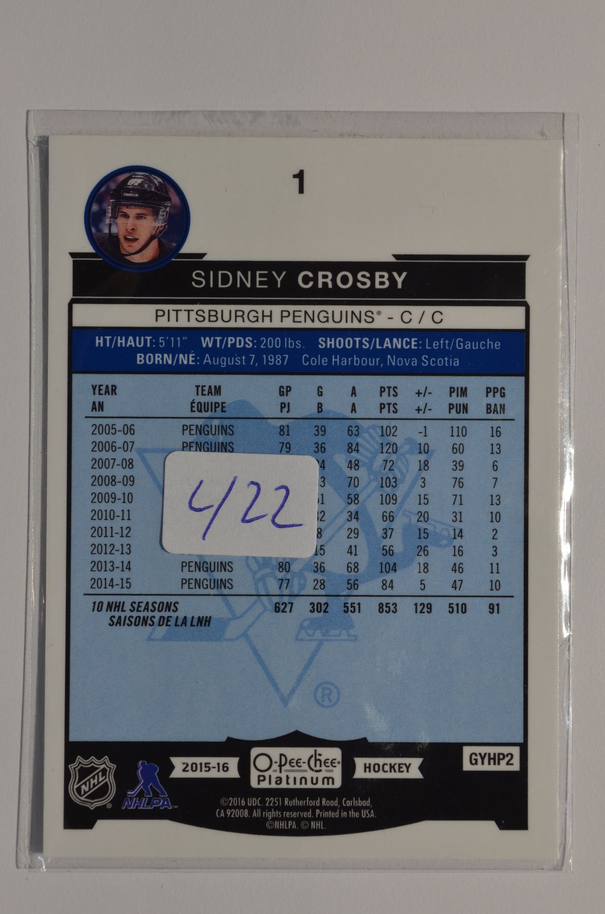 2015-16 O-Pee-Chee Platinum #1 Sidney Crosby