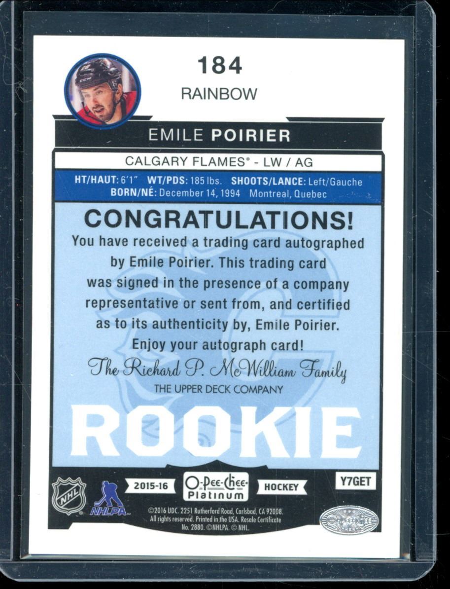 2015-16 O-Pee-Chee Platinum Rainbow #184 Emile Poirier Autograph