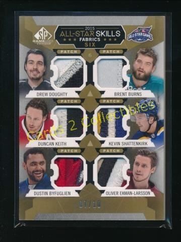 Patch #AS62 Drew Doughty/Duncan Keith/Dustin Byfuglien/Brent Burns/Kevin Shattenkirk/Oliver Ekman-Larsson 7/10. Valued at $150.00