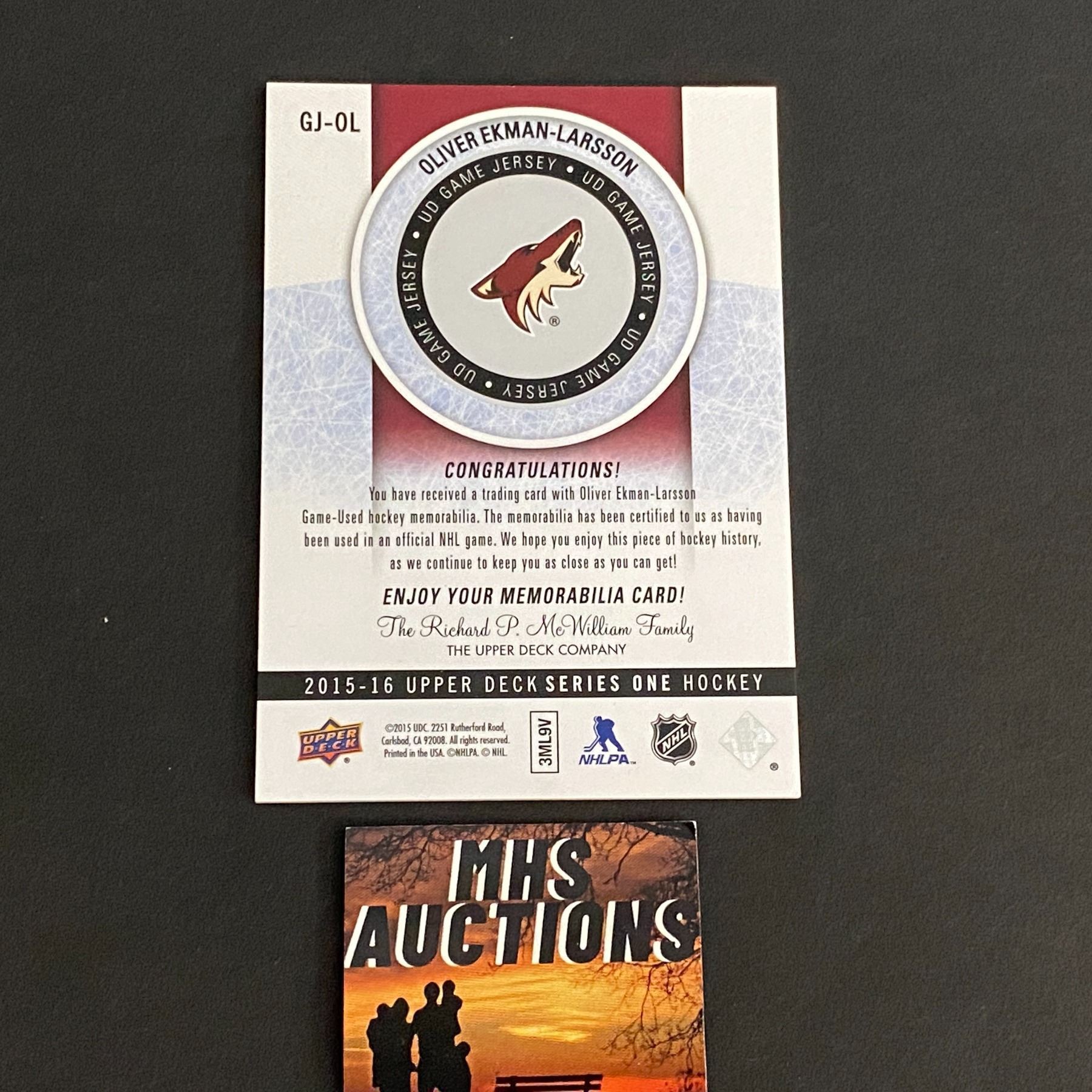 2015-16 U.D SERIES 1 HOCKEY OLIVER EKMAN-LARSSON JERSEY CARD