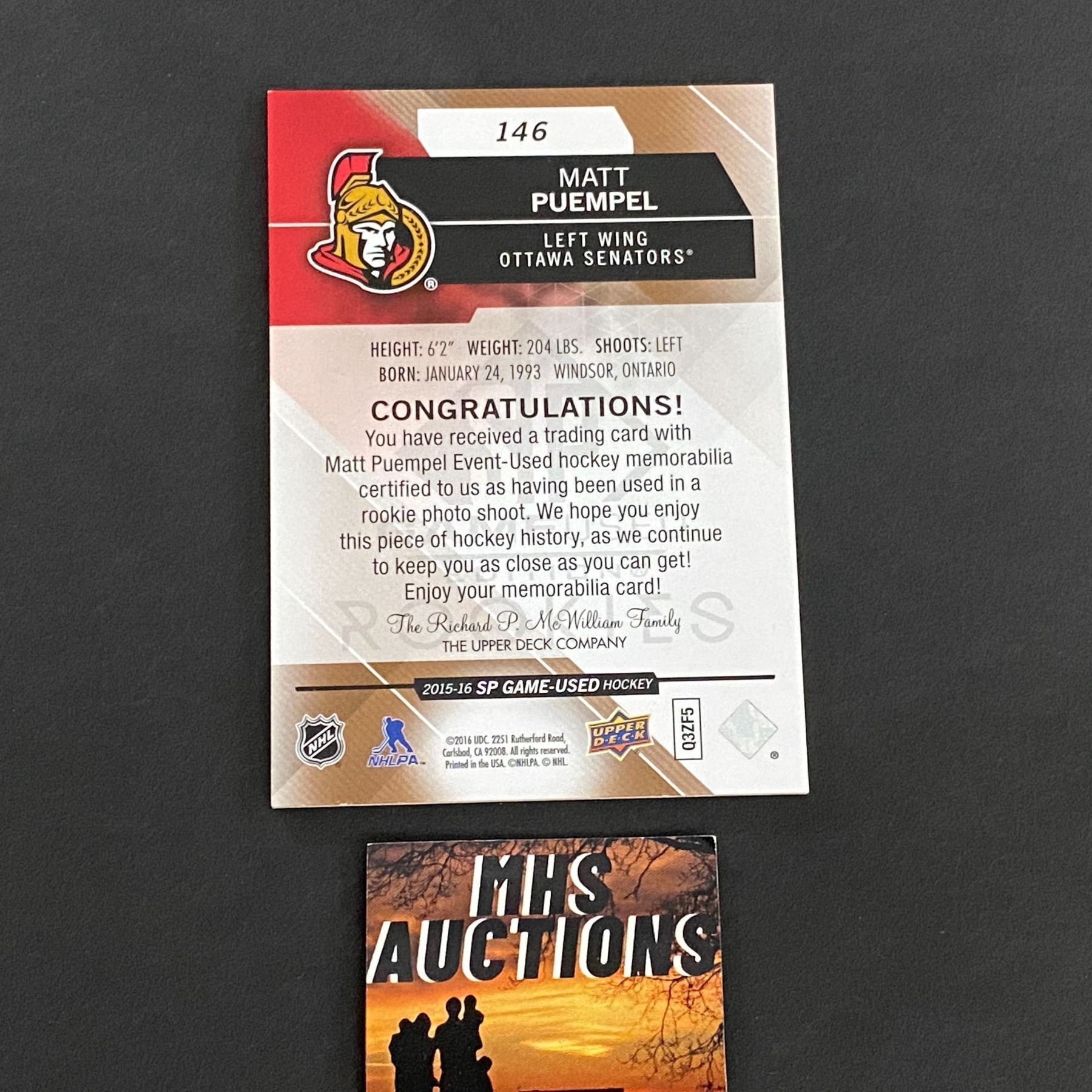 2015-16 U.D SP GAME USED HOCKEY MATT PUEMPEL JERSEY CARD ONLY 399 MADE #273/399