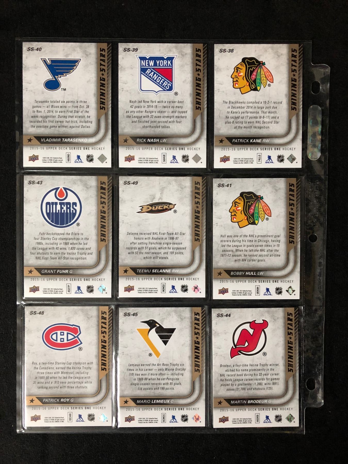 2015-16 UPPER DECK SERIES ONE SHINING STARS HOCKEY CARD LOT