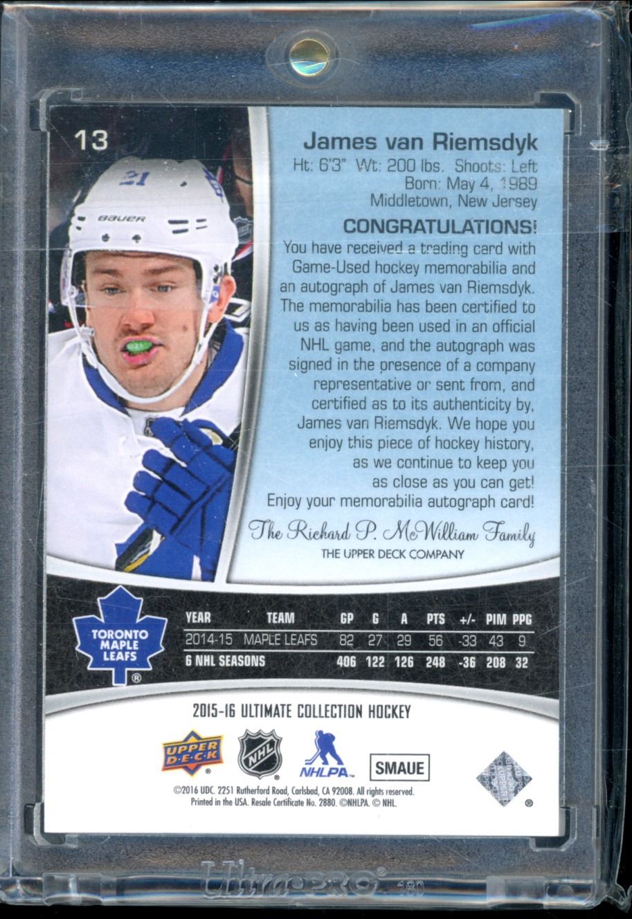 2015-16 Ultimate Collection Spectrum Gold #13 James van Riemsdyk Patch Autograph 23/25 BV $85