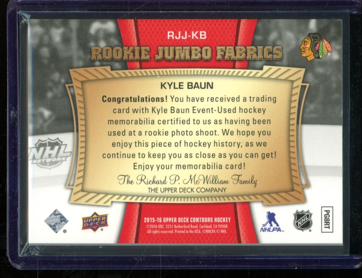 2015-16 Upper Deck Contours Rookie Jumbo Fabrics #RJJKB Kyle Baun 2 Color