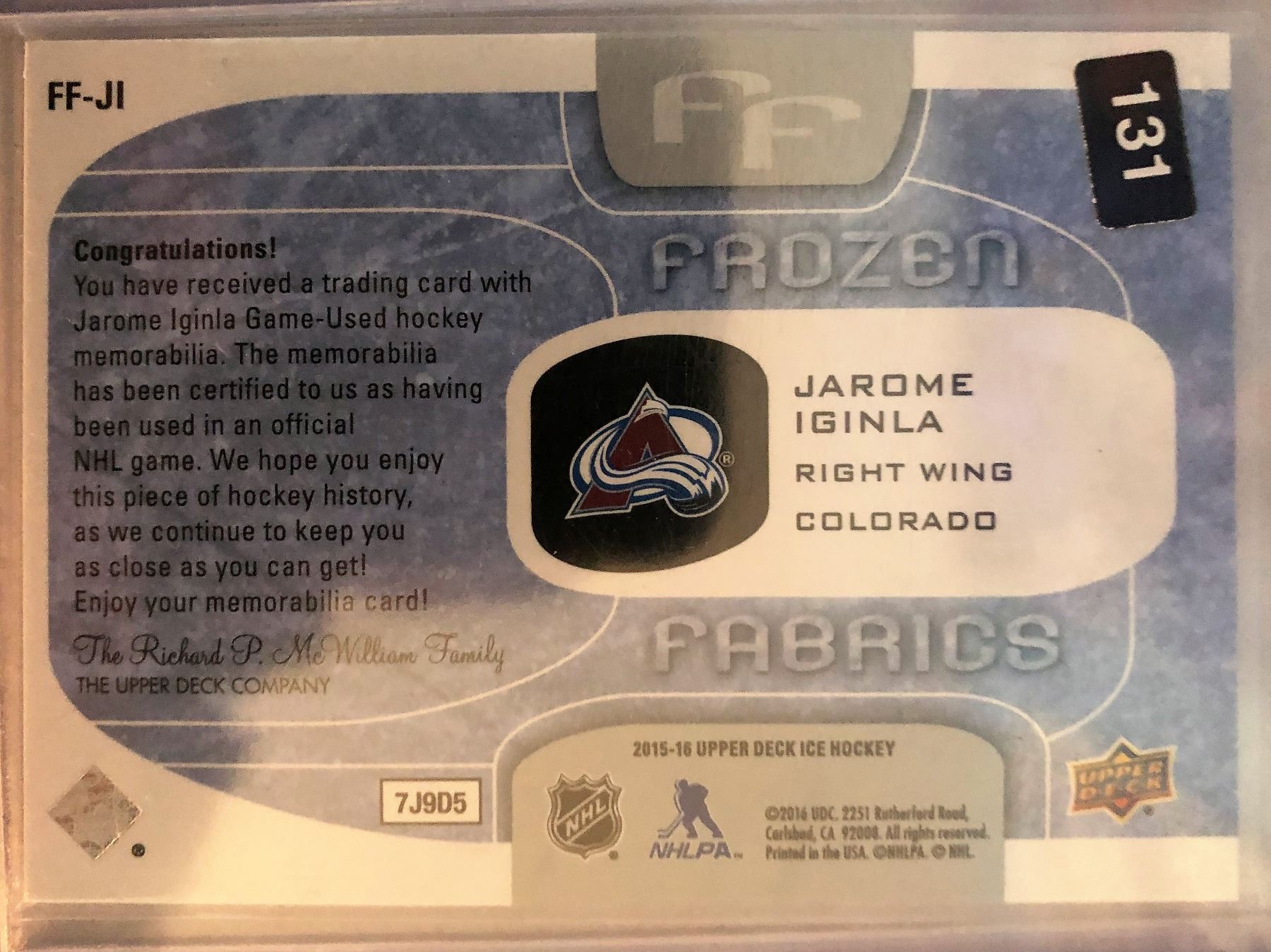 2015-16 Upper Deck Ice Jarome Iginla Frozen Fabrics #FF-JI