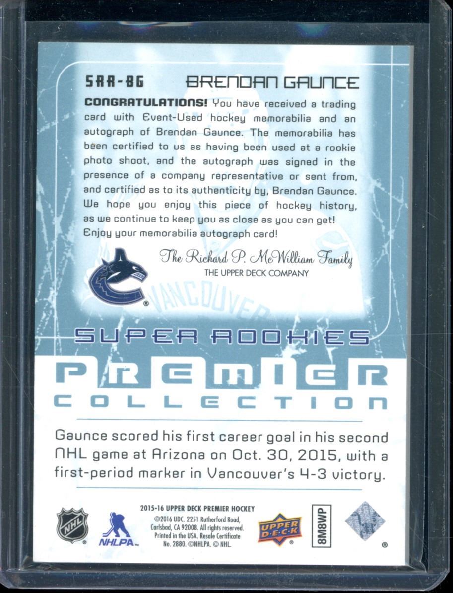 2015-16 Upper Deck Premier '03-04 Tribute Rookies Autograph Patches Brendan Gaunce 57/99 BV $75