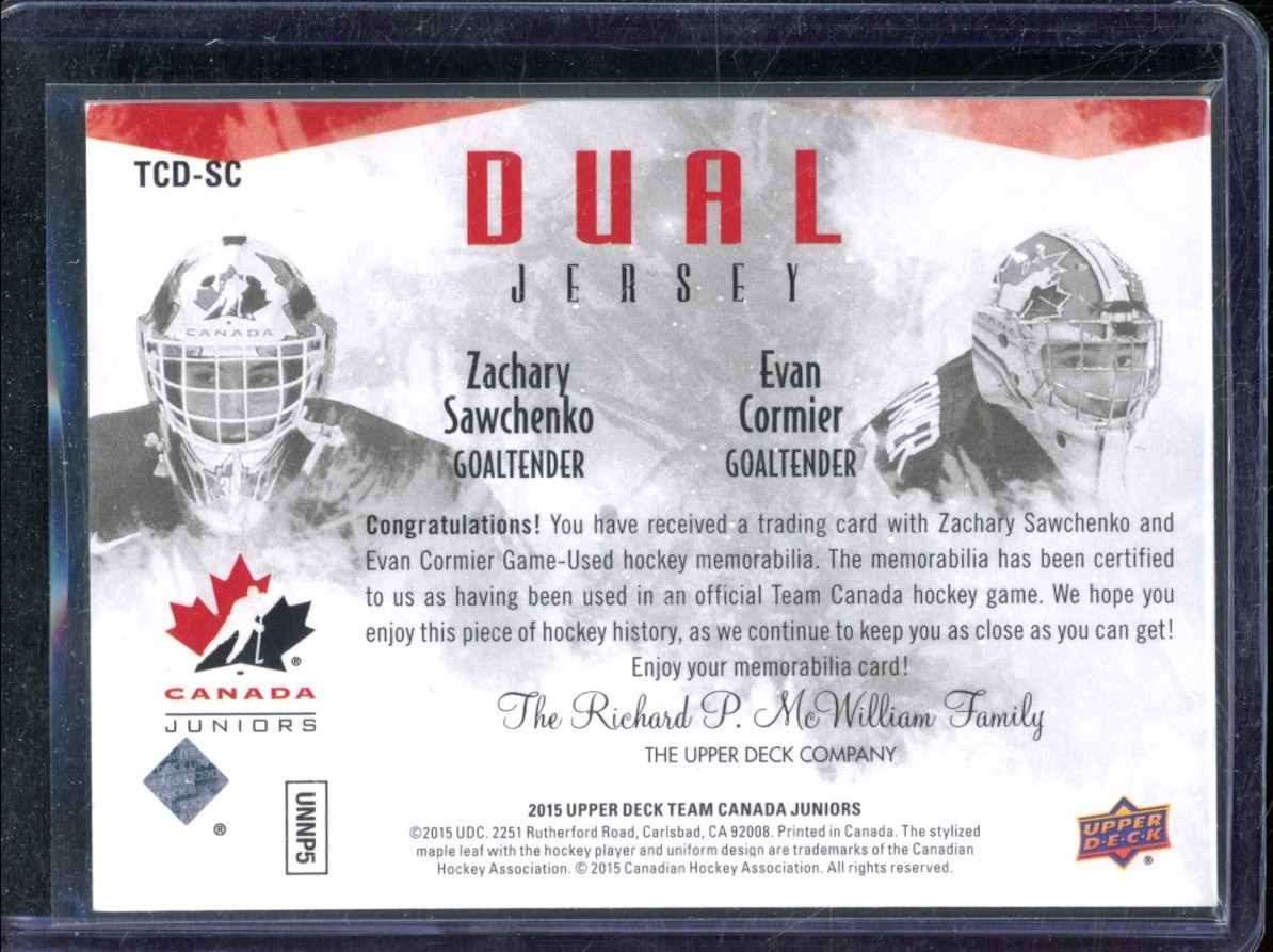 2015-16 Upper Deck Team Canada Juniors Dual Jerseys #TCDSC Zachary Sawchenko/Evan Cormier