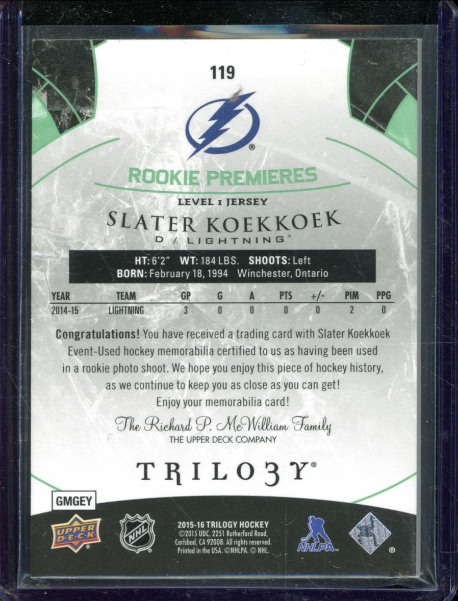 2015-16 Upper Deck Trilogy Rainbow Green #119 Slater Koekkoek JSY 291/599