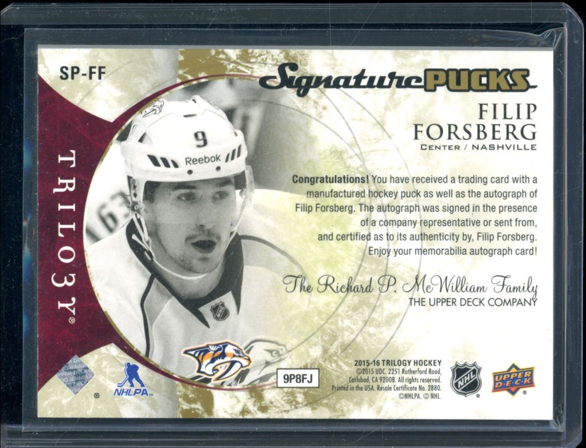 2015-16 Upper Deck Trilogy Signature Pucks #SPFF Filip Forsberg BV $40