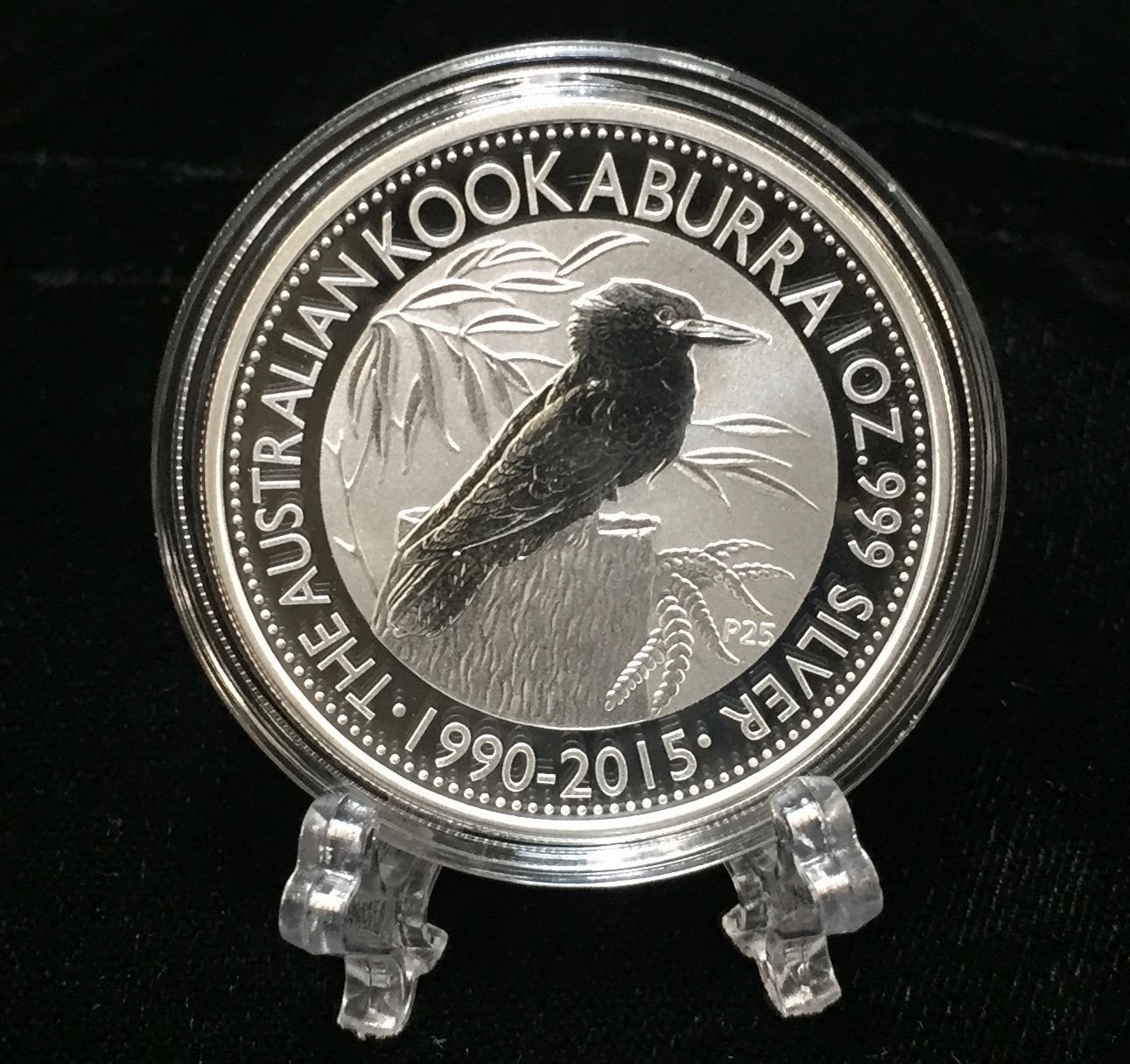 Lot 237; 2015(1990-) 1oz Australia Kookarburra 25th Anniversary $1 Silver BU Coin, Queen Elizabeth II Effigy