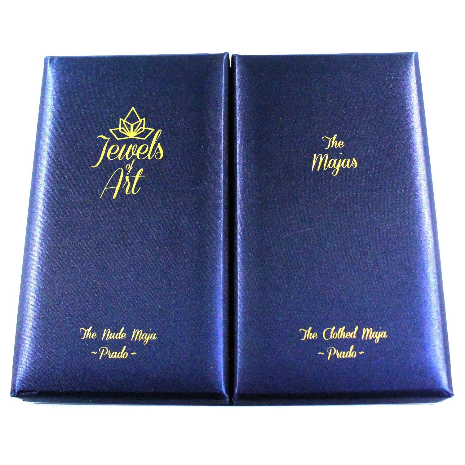 2015 2-coin Solomon Island $5 Set, featuring 1oz Pure Silver with 24K gold plating with cabochon Sapphire and Ruby accents. The bars feature the famous painting La Maja Desnuda and La Maja Vestida. Comes in original display case with C.O.A Limited Mintage 1795! 2pc (Tax exempt)