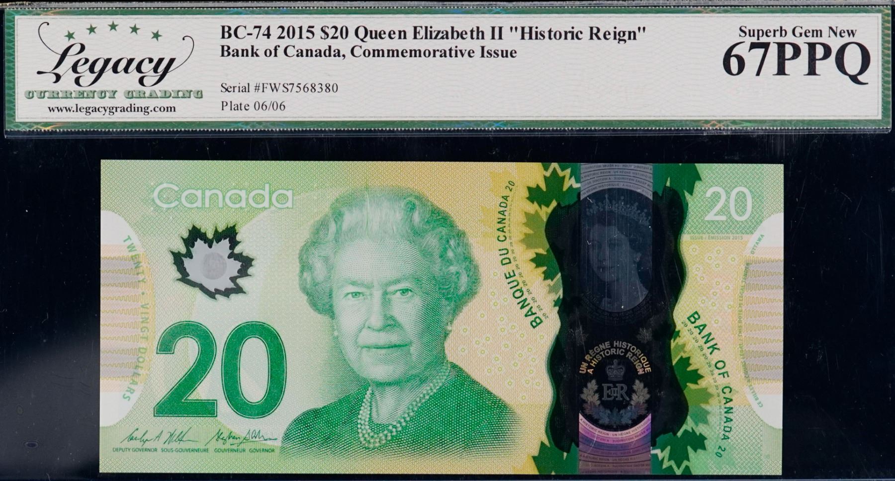 2015 $20 BC-74 #FWS7568380 "Historic Reign" Commemorative issue LCG UNC67PPQ