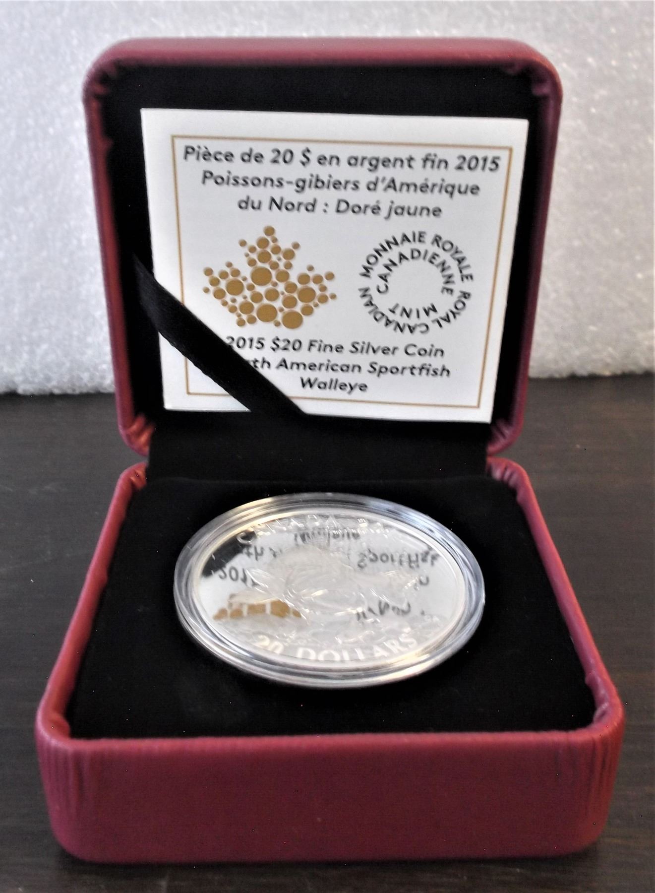 2015 $20 Canadian Fine Silver Coin - North American Sportfished Walleye. Finish: Proof