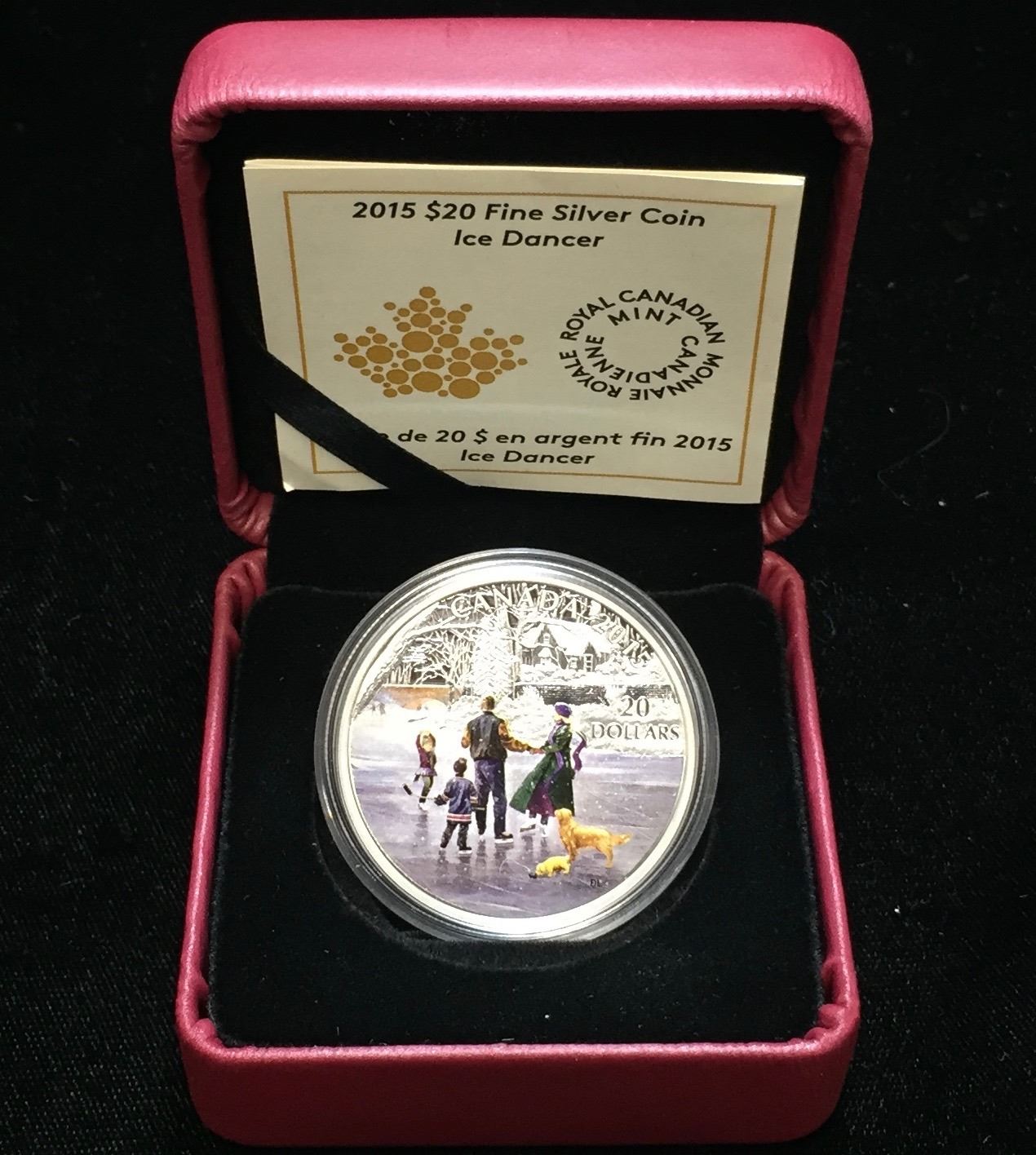 Lot 48; Fine Silver .9999 2015 $20 Ice Dancer, Proof Finish, Color, Includes COA and RCM Packing