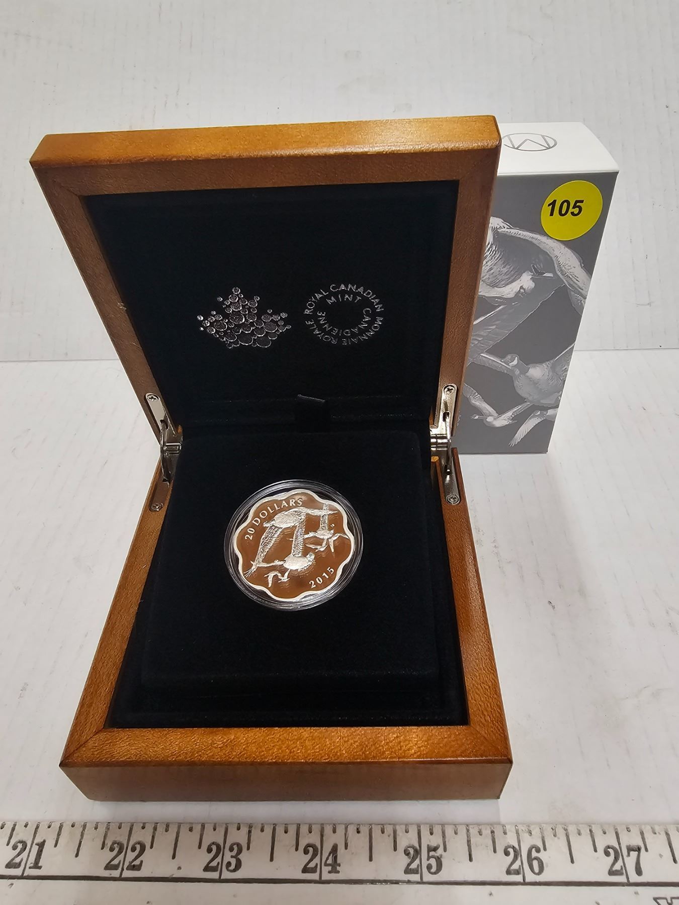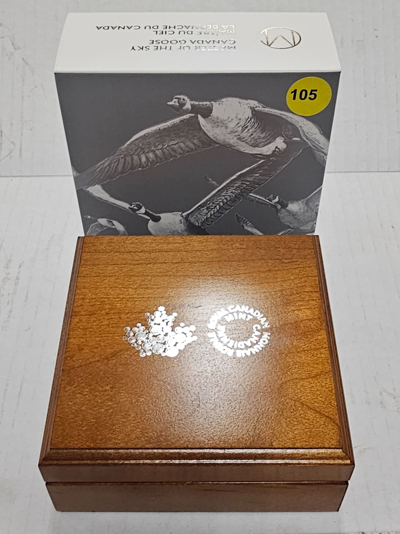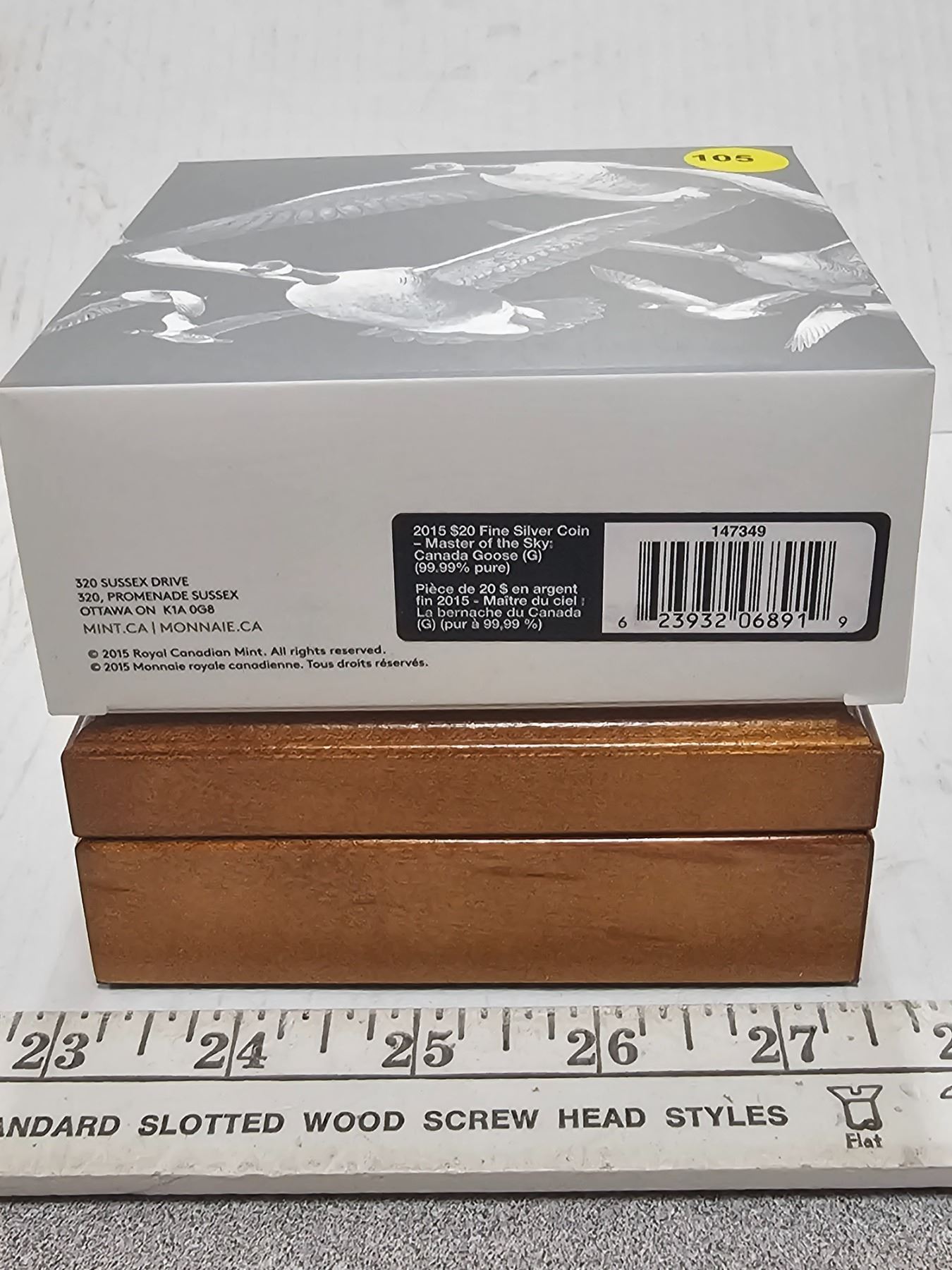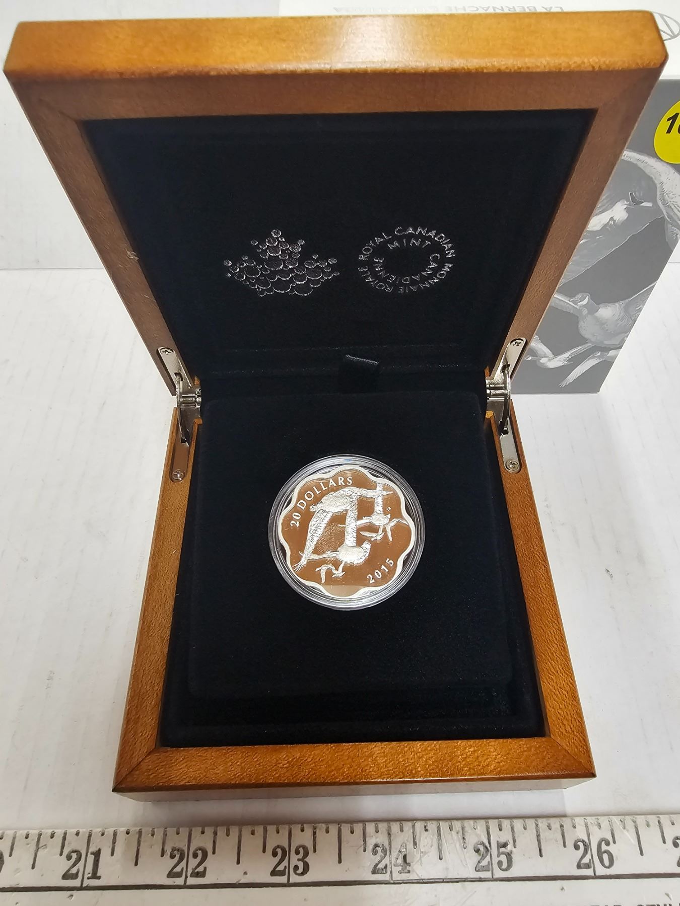 2015 $20 Master of the Sky: Canada Goose. Scalloped Edges. Proof with Ultra Heavy Cameo. 99.99% pure Silver. Housed in its original Royal Canadian Mint case & box of issue plus Certificate of Authenticity.