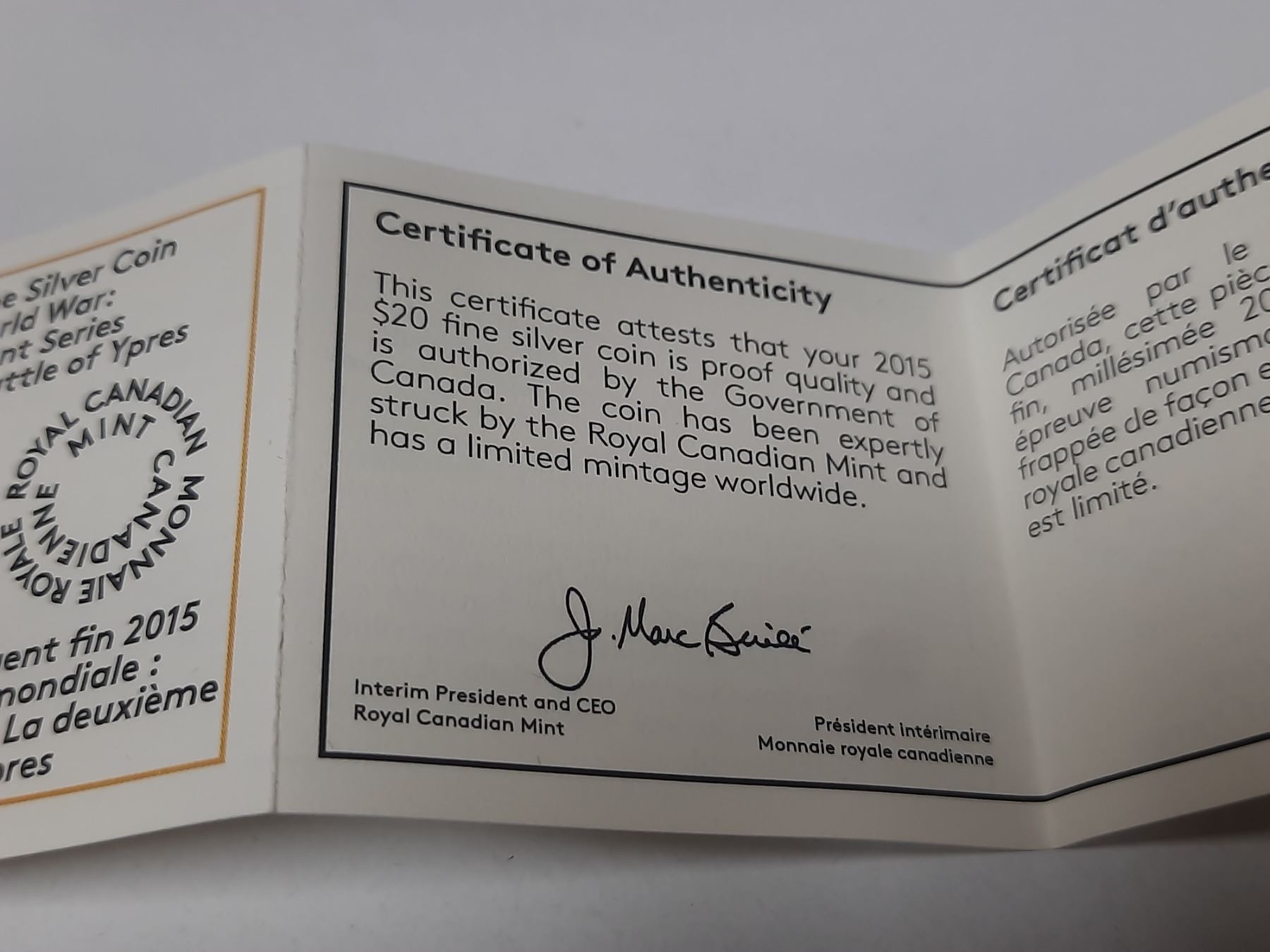 2015 $20 fine silver coin (99.99% pure)