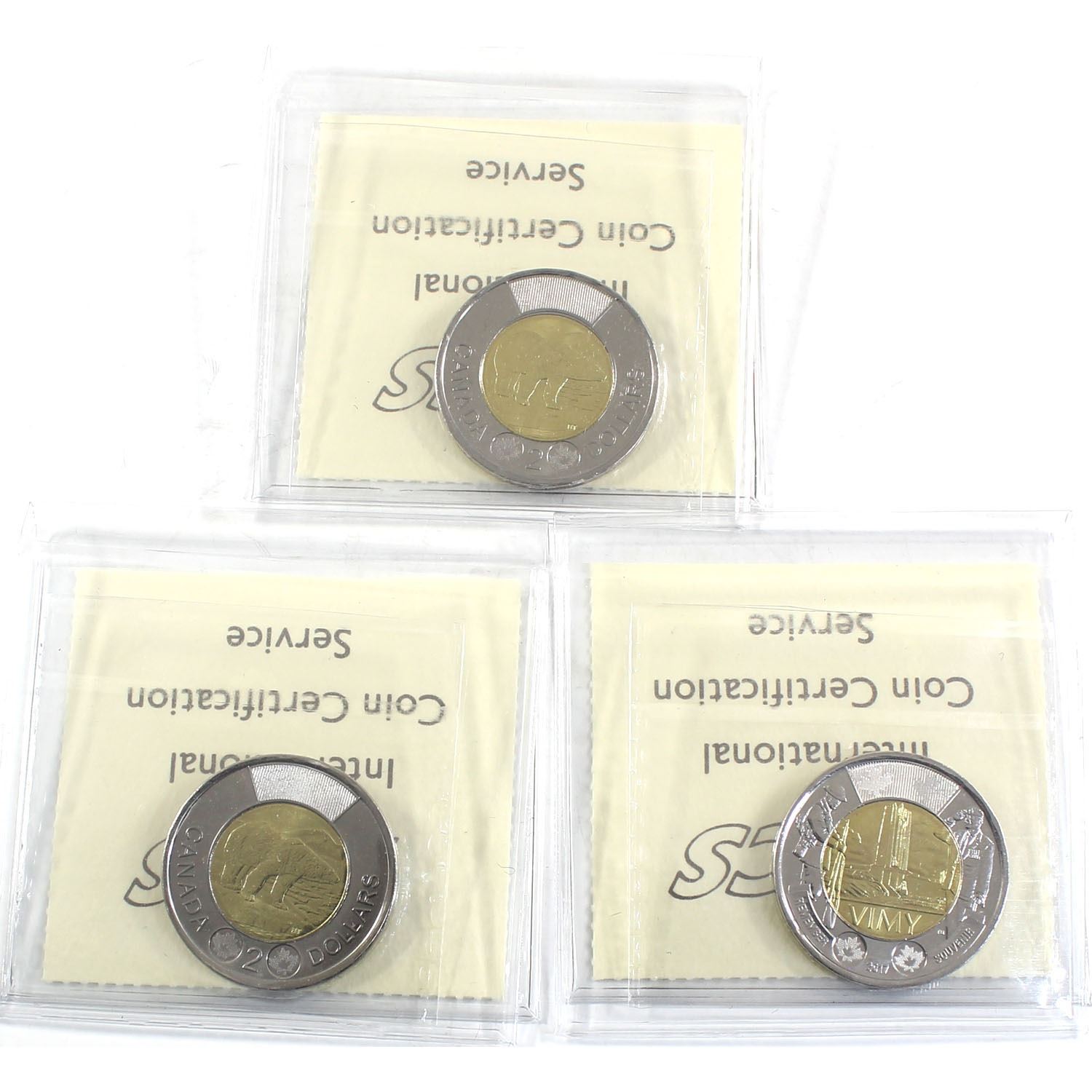 2015, 2016 & 2017 Vimy Two Dollar ICCS Certified MS-65. 3pcs