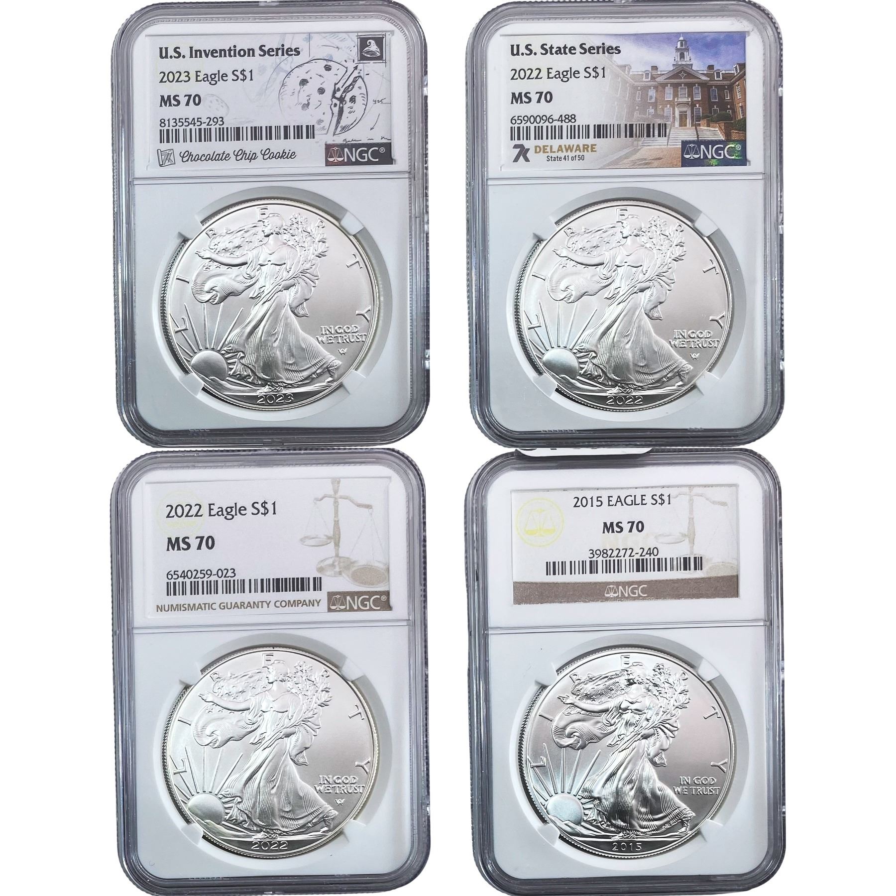 2015-2023 GEM Bu Silver Eagle [4 Coins] NGC MS70