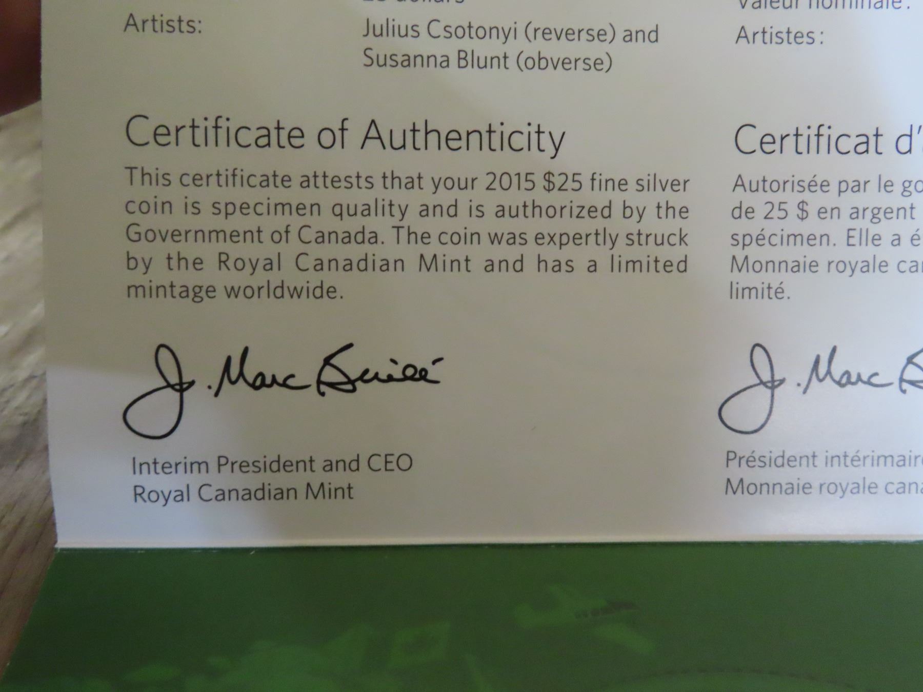 2015 - $25.00 for $25.00 Silver - Cdn Flag