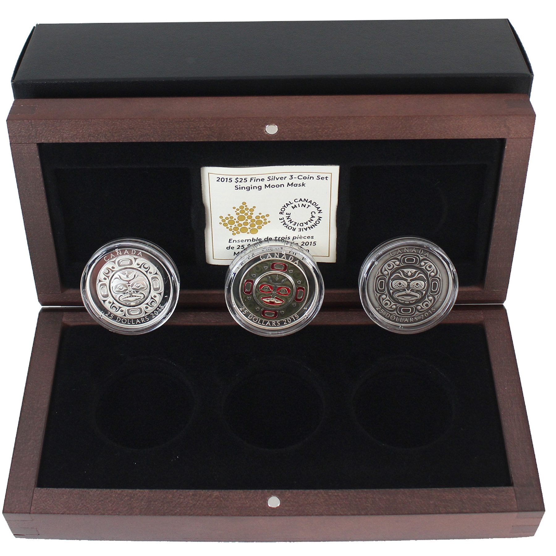 This set features three finishes: proof, antique and colour enamel. An exceptional celebration of First Nations art and heritage. Each coin is 30.76g .9999 pure silver. (Tax Exempt)