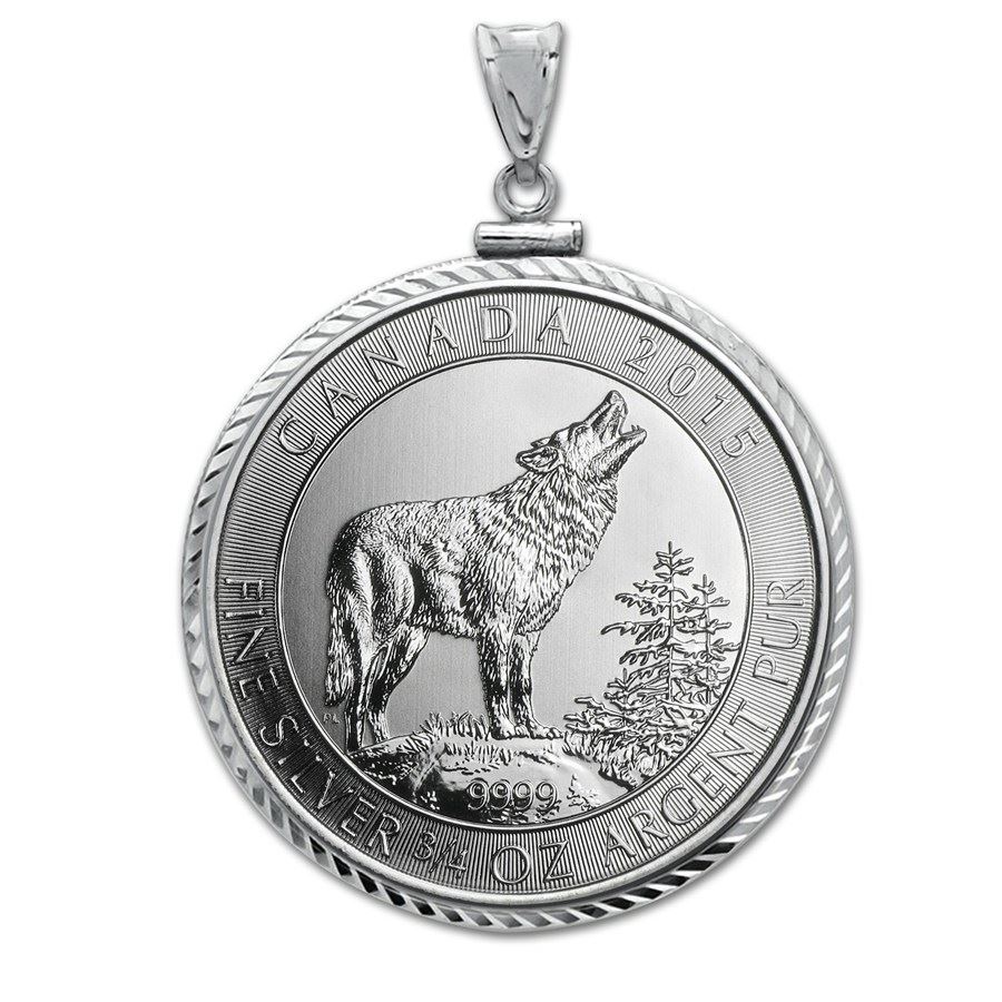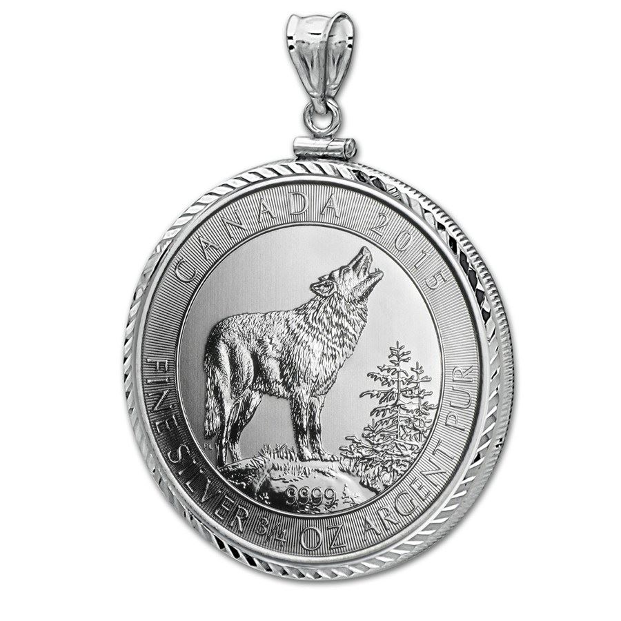 2015 3/4 oz Silver Wolf Pendant (Diamond-ScrewTop Bezel)