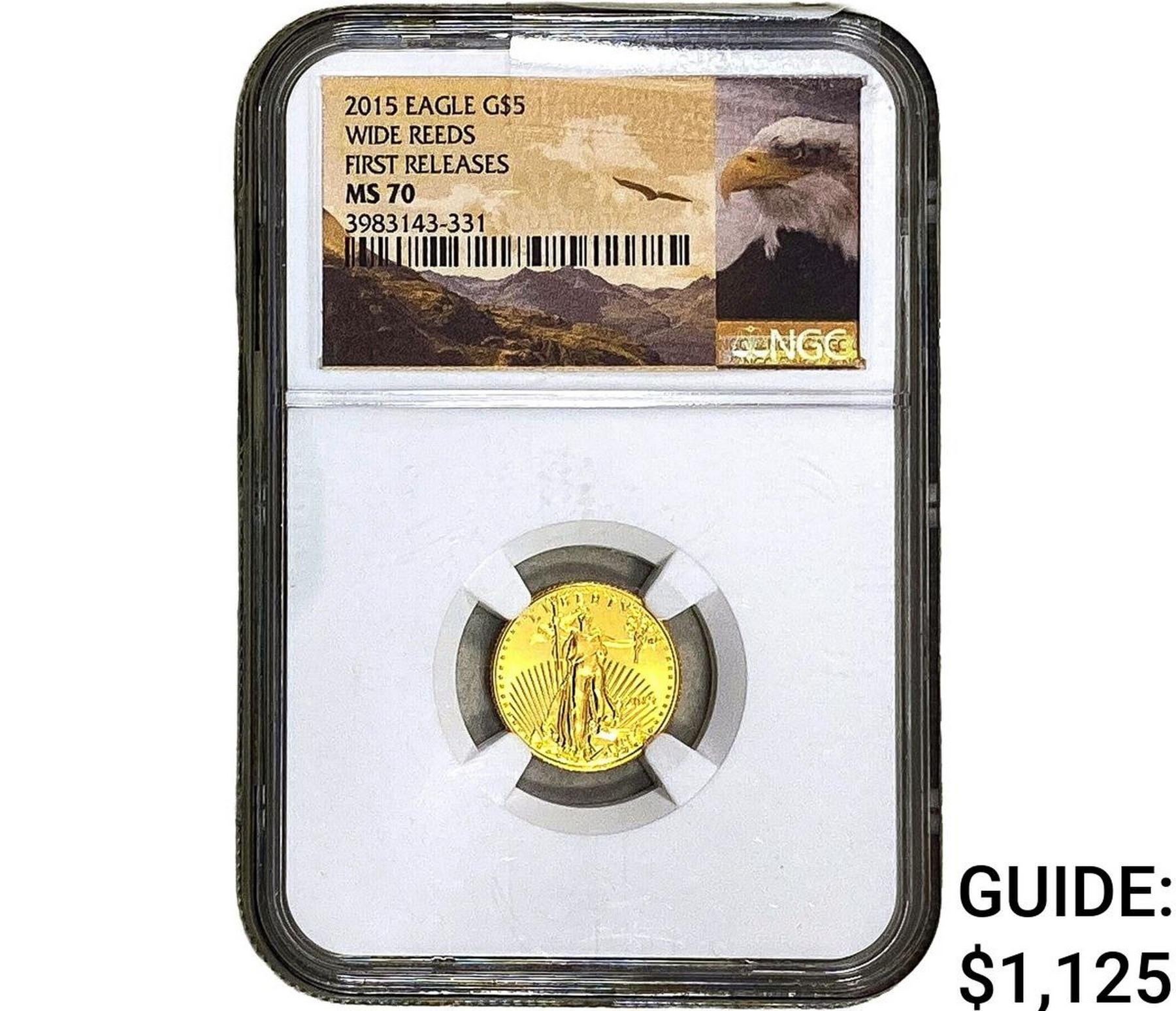 2015 $5 1/10oz Gold Half Eagle NGC MS70 Wide Reeds