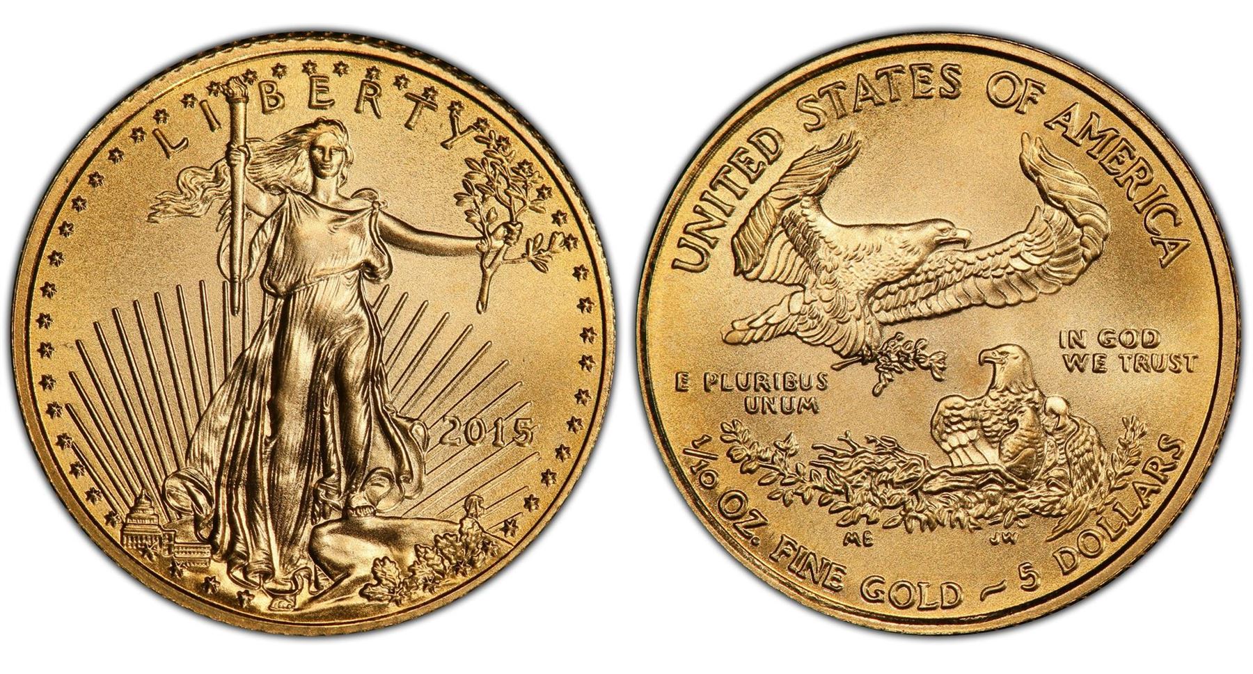 One 2015 $5 American Eagle Gold Coin.