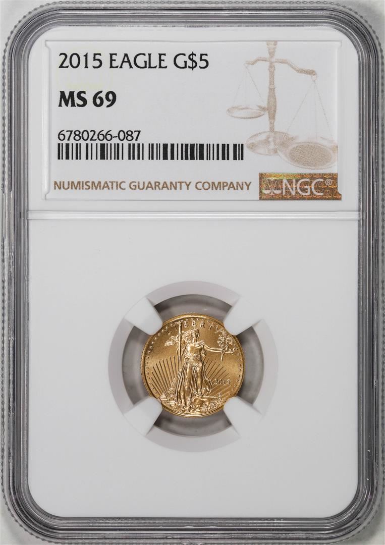 One 2015 $5 American Gold Eagle Coin NGC MS69. NGC Certified.