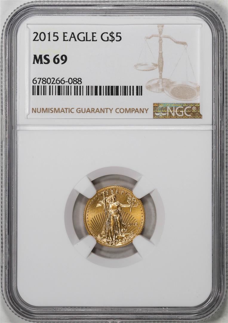 One 2015 $5 American Gold Eagle Coin NGC MS69. NGC Certified.