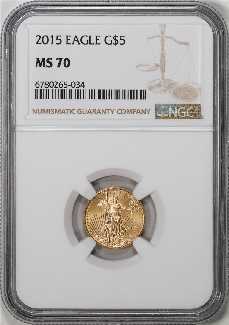 One 2015 $5 American Gold Eagle Coin NGC MS70. NGC Certified.