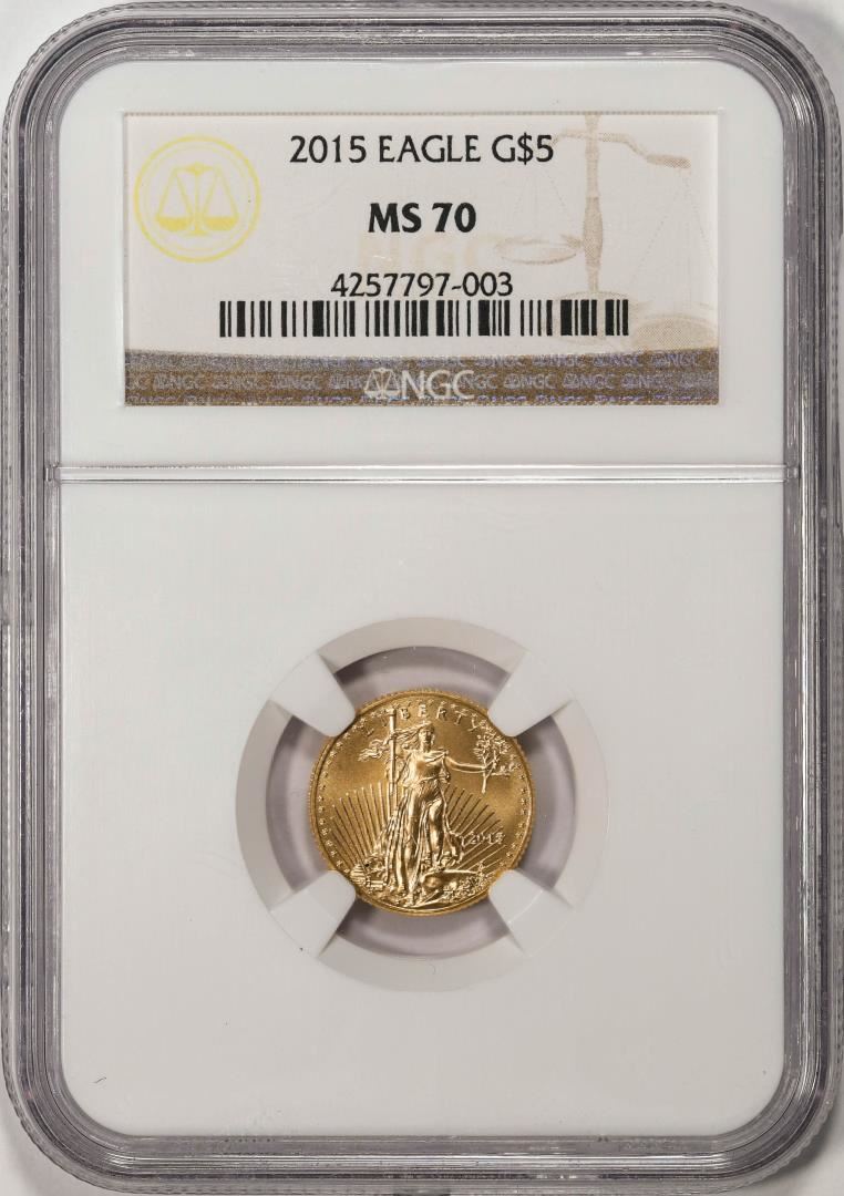 One 2015 $5 American Gold Eagle Coin NGC MS70. NGC Certified.