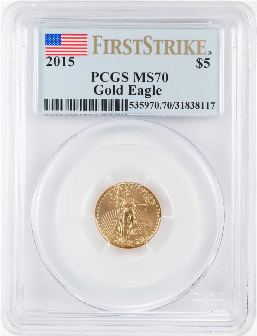 One 2015 $5 American Gold Eagle Coin PCGS MS70 First Strike. PCGS Graded.