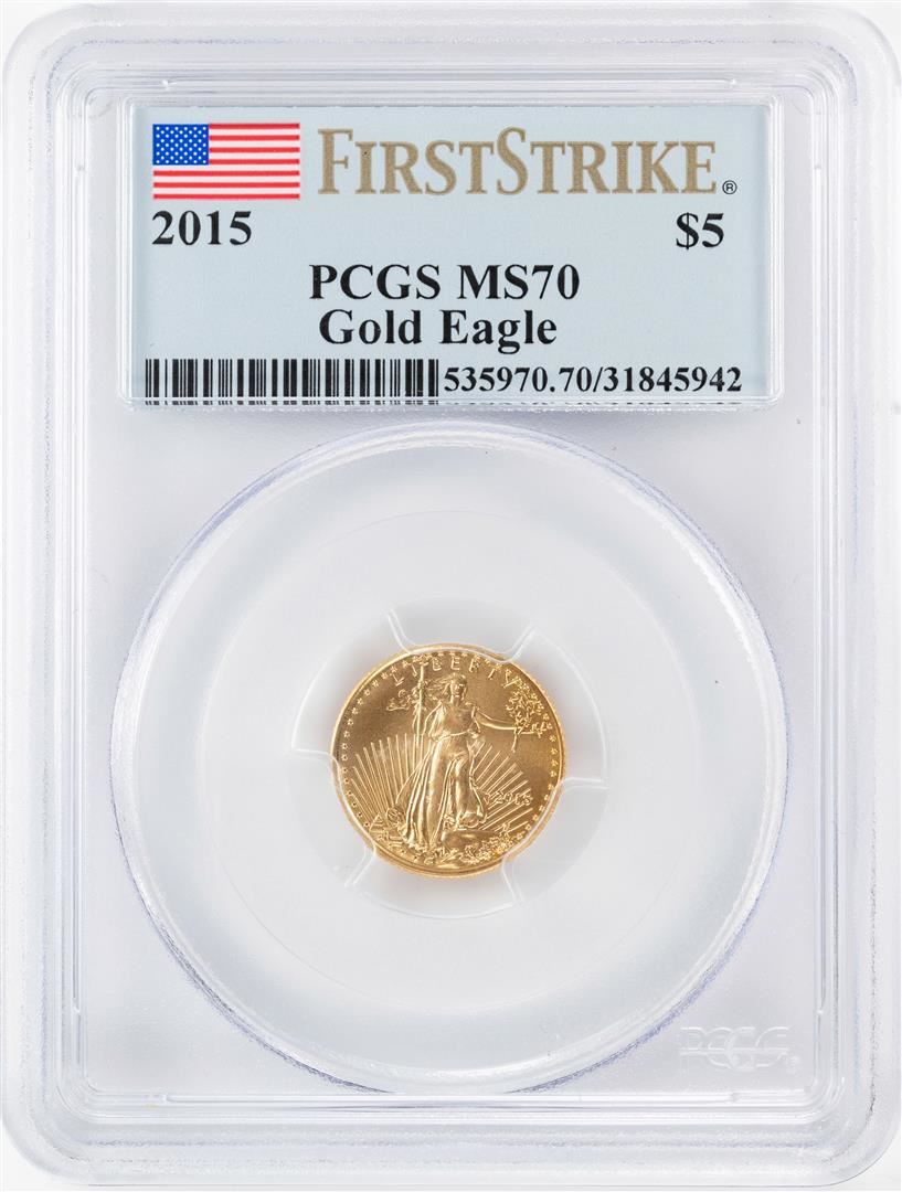 One 2015 $5 American Gold Eagle Coin PCGS MS70 First Strike. PCGS Graded.