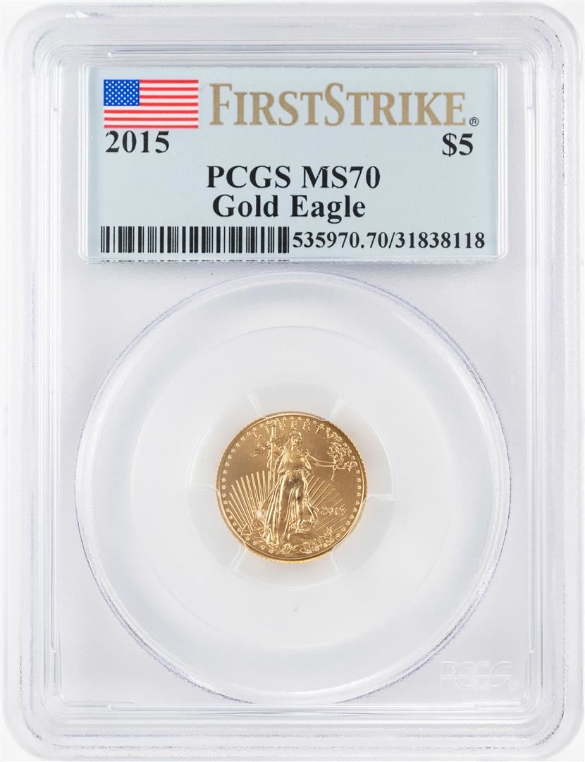 One 2015 $5 American Gold Eagle Coin PCGS MS70 First Strike. PCGS Graded.
