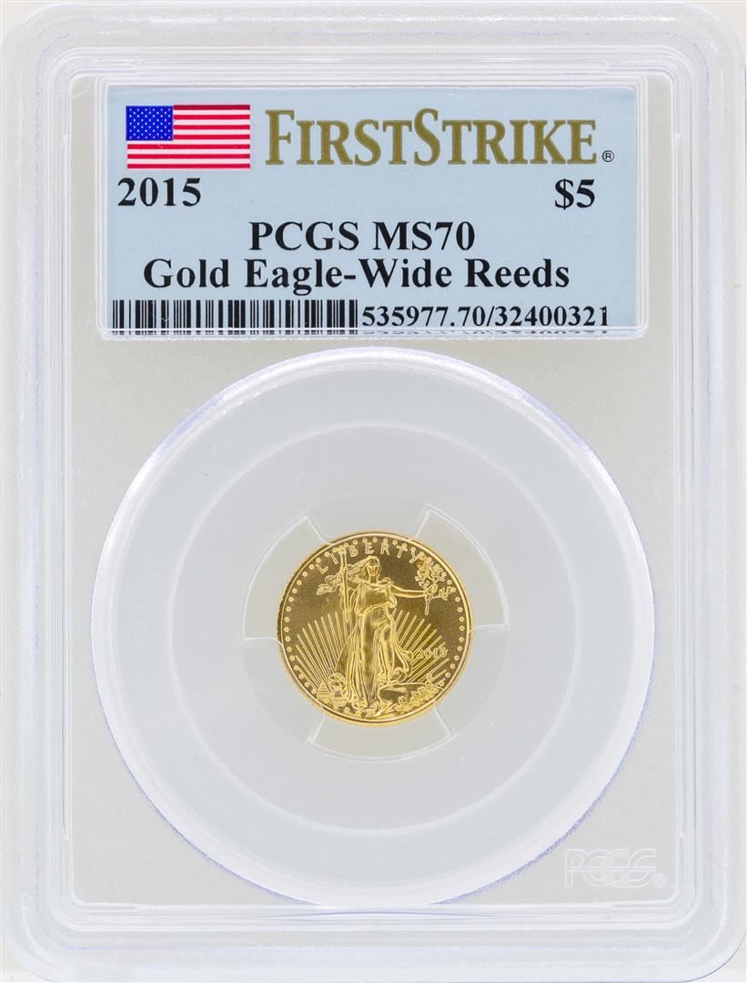 One 2015 $5 American Gold Eagle Coin PCGS MS70 Wide Reeds First Strike. PCGS Graded.