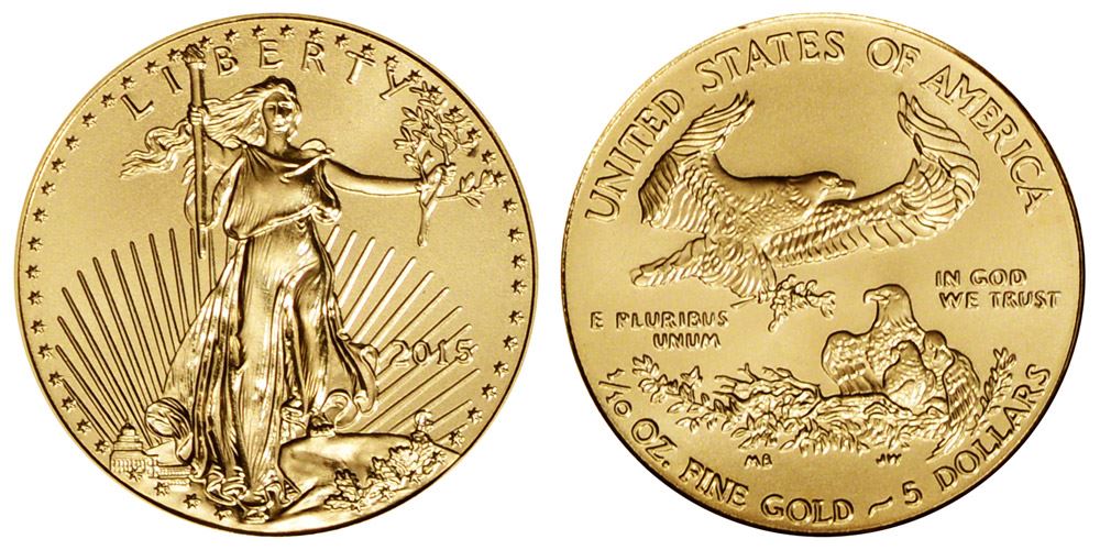 One 2015 $5 American Gold Eagle Coin.